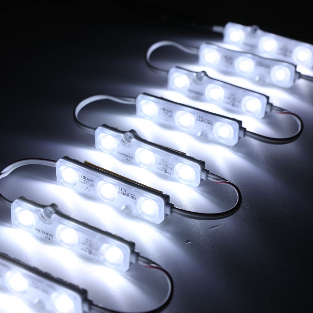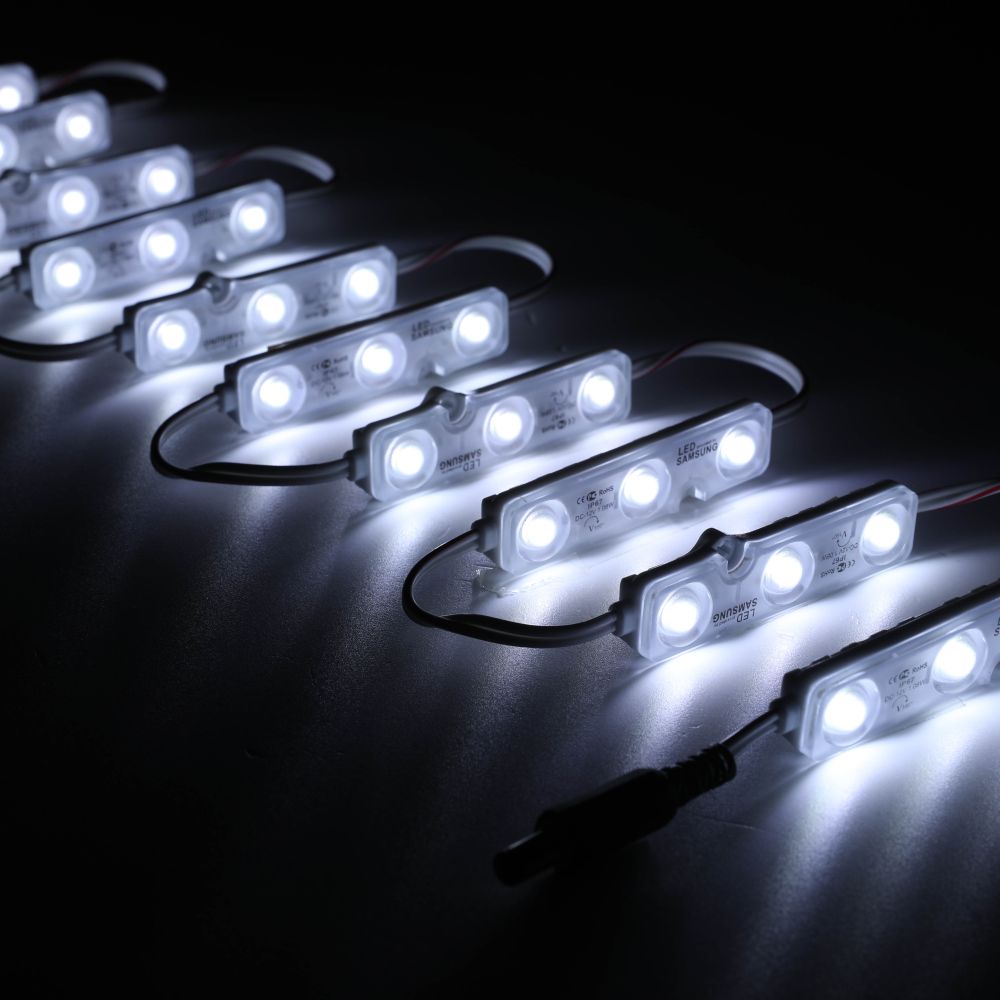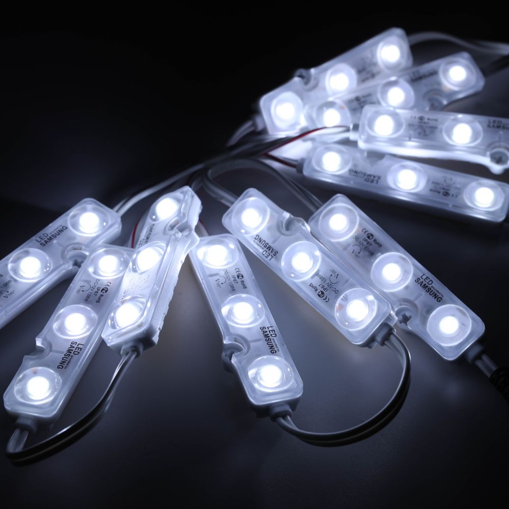 10000K White 2835 3 LED Module with 160° Lens, 100LM Brightness, 2×50 pcs Pack for Letter Sign Billboard Backlight