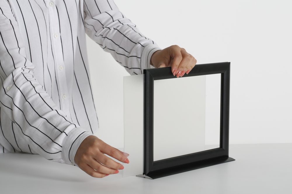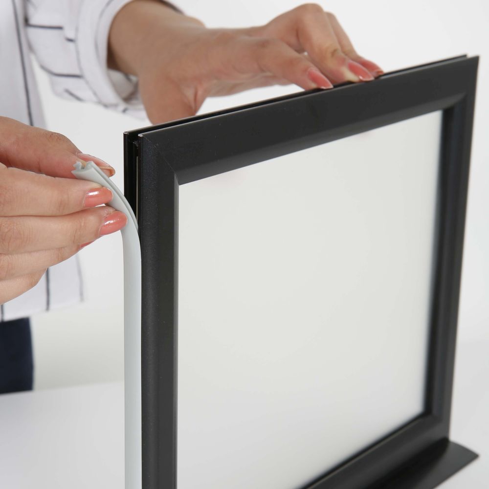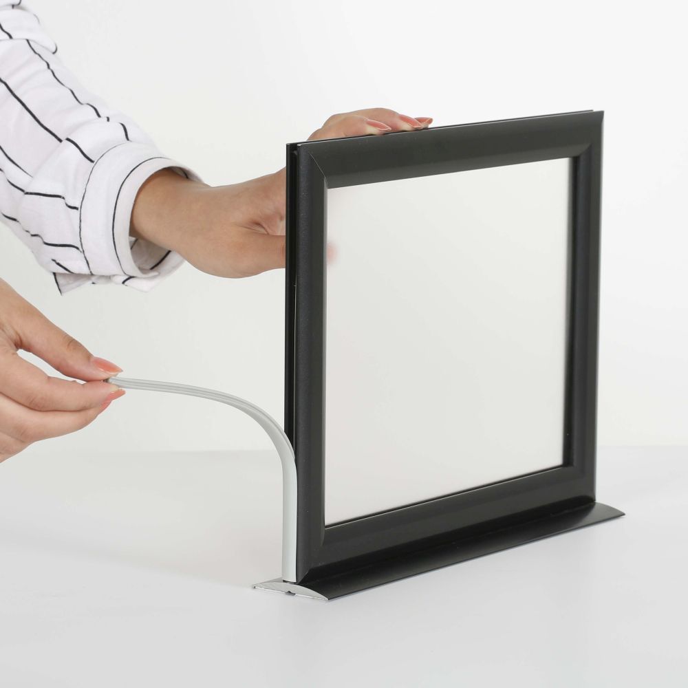 Introducing our innovative counter stand slide-in frame, designed for effortless insert changes. Simply slide your materials in and out with ease. This model includes two durable PET covers, a protective plastic wick on the open side, and secure double-sided tapes at the base for stability. Perfectly crafted for a landscape orientation, this frame is ideal for showcasing promotional materials, menus, or signage in a sleek and professional manner. Enhance your display with this practical and user-friendly slide-in frame, perfect for any retail or business environment.