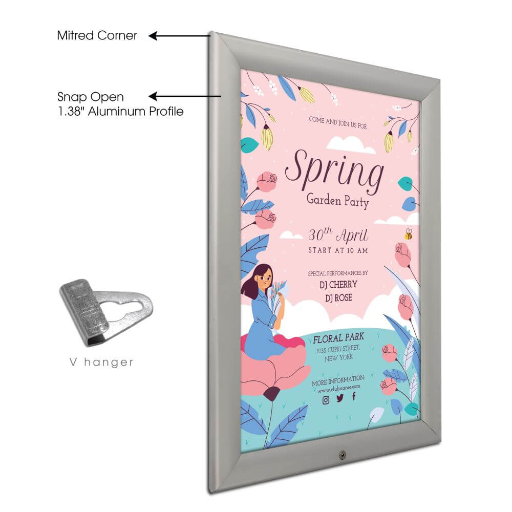11×17 Silver Lockable Weatherproof Snap Poster Frame – 1.38″ Aluminum Front-Loading Wall Mount Display