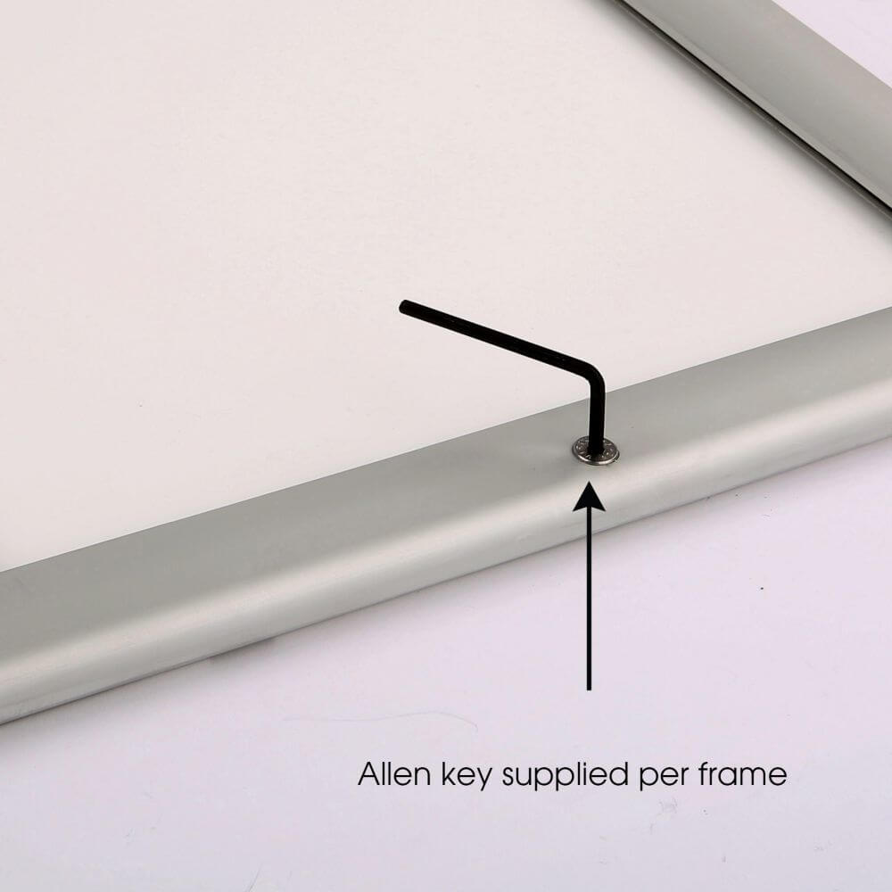 Introducing our innovative lockable poster frame, designed for ultimate security and durability. This unique frame features a sequential opening system on all four sides, ensuring that your poster remains protected from unauthorized access. The final profile is securely fastened with a top screw, which can only be opened using the provided key, offering peace of mind for your valuable displays.