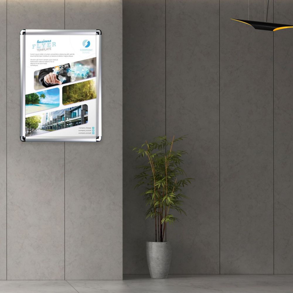 The use of this aluminum frame is fairly easy. To load or change a graphic, simply snap open the four spring-loaded frame edges, remove the anti-glare transparent cover and place graphic, picture, photo, poster and or artwork as required, then snap close the frame edges. The anti-glare cover allows a clear view of the print, poster and protects the artwork from dust and direct light.It is made of the finest materials while providing the highest level of quality. The aluminum profile makes the product durable yet light to carry easily. Anodized finish will protect the frame from dust and light scratches. Anti-glare cover protects your poster from getting dirt, dust and damage yet prevents glaring for a better and clear view.Suitable for indoor use. It can be used in portrait or landscape position. An excellent way to get attention when you want to display pictures, photos, posters, documents or certificates, marketing advertisements, promotions and important messages. It can be used in a multipurpose setting, whether this may be at your place of business, office, markets, cafes, restaurants, shopping centers, cinemas, cafes, theaters, hospitals or more.