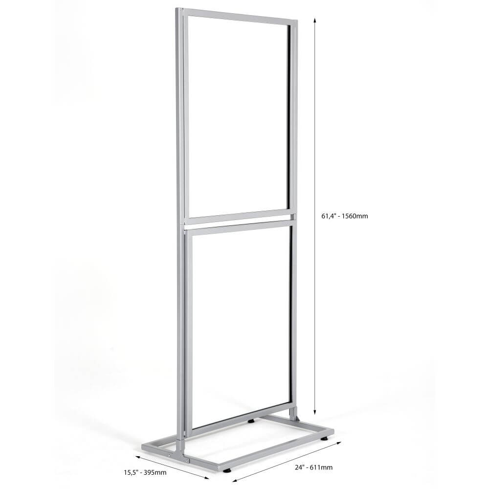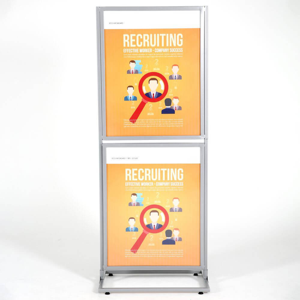Introducing our Double-Sided Info Board, expertly designed for optimal advertising and visibility. Crafted with a robust metal construction and a durable metal base, this board ensures stability and longevity. Each tier is equipped with a backing to neatly separate your posters, while the two anti-glare lenses provide a crystal-clear view, enhancing the impact of your advertisements. The convenient slide-in frame design allows for effortless poster insertion from the top, making updates quick and easy. Most importantly, this versatile board displays posters on both sides, maximizing exposure and ensuring your message reaches a wider audience. Perfect for businesses seeking an effective and professional advertising solution.
