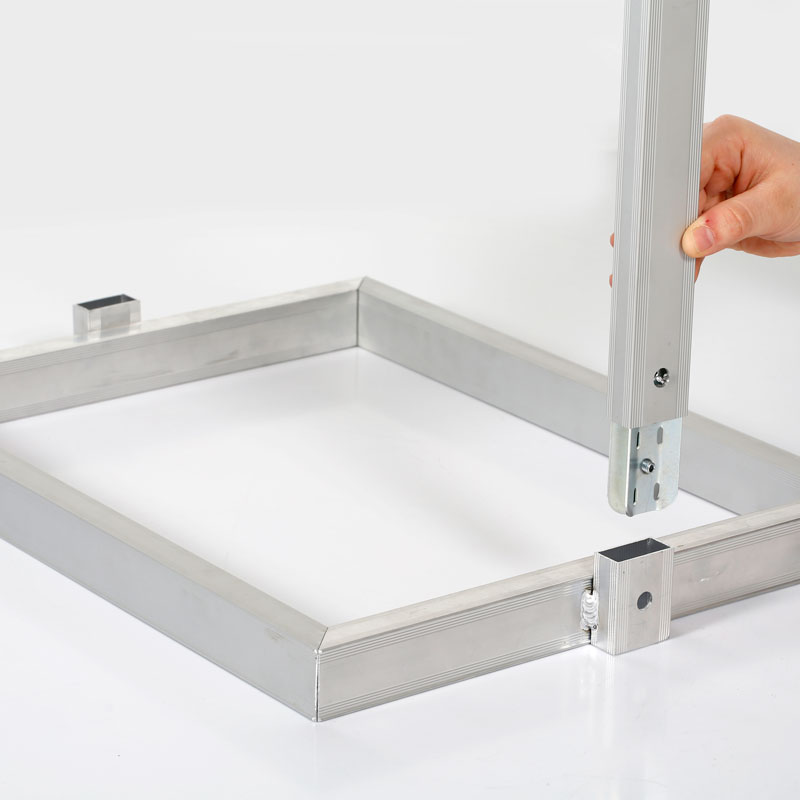 The use of this Slide-In info board is fairly easy and it is Double-Sided. You can load 2 signs back to back, visible on both sides. To load or change a graphic, Remove the backing with the anti-glare PETs. Position the poster between the backing and the PETs, slide the backing in. It allows a clear view of the print, poster and protects the artwork from dust and direct light.Suitable for indoor use. It is made of the finest materials while providing the highest level of quality. It has a sturdy cast iron profile with an anti-corrosive coating. The coating protects the frame from dust and light scratches.Having a stylish and simple appearance, large and eye-catching visual size, is the best information display stand for star hotels, restaurants, exhibitions, and other places. It suits every decoration in offices, restaurants, cafes, boutiques, bookstores, bakeries, and many more. You can effortlessly display your poster, advertisement, and even your menu at your business.