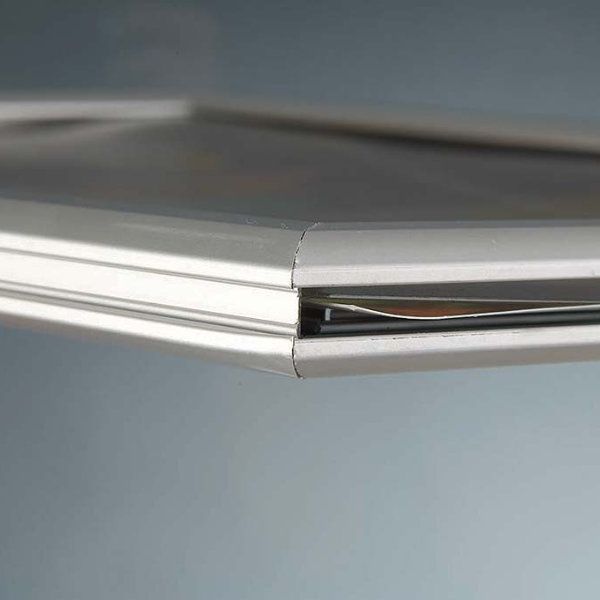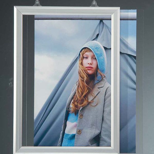 22×28 Double-Sided Slide-In Frame – 1″ Silver Mitered Profile Display