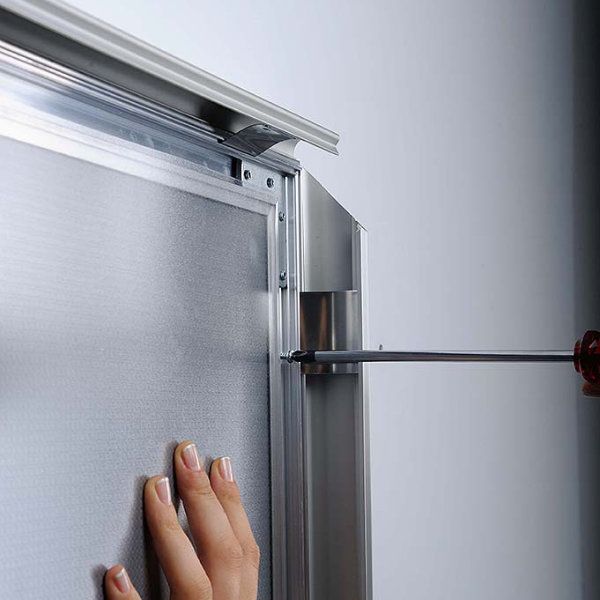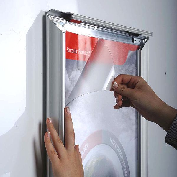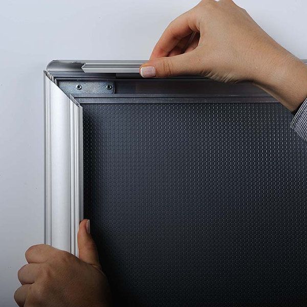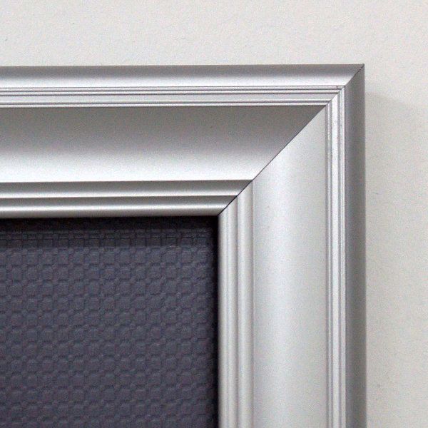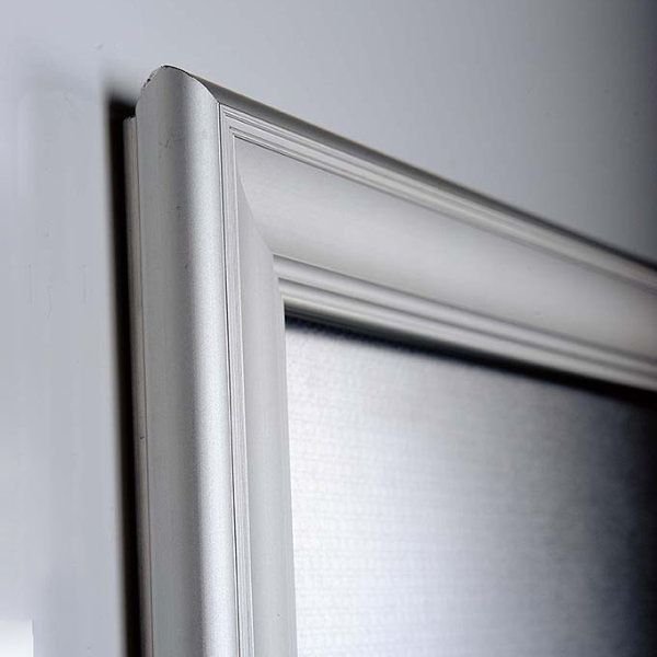 Snap frames are the best tools to display your advertisements, posters or graphics. These front loading fancy frames have 1.58 inch lift up profiles in silver anodized color. Poster size is 22x28, mounts vertically or horizontally. You can change the sign, the poster on the wall, without having to take the fancy snap poster frame off the wall. Wall mounting hardware is supplied with each frame. Wall mount holes are concealed inside the frame. The frames simply open and close to change the poster. By its easy and quick use, modern style wall mounted snap frame is an ideal solution for frequently changing signs. Fancy snap open frames accept posters and paper signs up to 0.008 inch thick.Easy open decorative snap frames have anti-glare poster cover sheet. This non-glare overlay is to protect the poster from dirt and any damage as well as to prevent glaring.Each modern style poster frame is supplied with a set of 4 screws and 4 anchors to be mounted on the wall in either a portrait and landscape position. Optional hanger is available for easy mounting. Each frame comes with an instruction sheet explaining how to set and use.Fancy frames have more decorative and stylish design than traditional models. This decorative design catches the attention of viewers on the displayed signs. These picture frames will capture the eyes within any commercial environment. Silver anodized finish, decorative aluminum construction makes this decorative snap frame both stylish and durable. Even in high trafficked places, this decorative snap frame will last long.