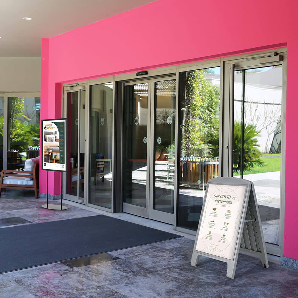 Introducing our Oval Info Board, a top choice for those seeking a stylish and elegant display solution. This popular design features a sleek black floor stand that is both easy to assemble and move, making it perfect for versatile use in any setting. The board is supported by a heavy-duty steel base, ensuring stability and durability, while four rubber footings protect your floors and prevent slipping. Ideal for showcasing information in offices, retail spaces, or events, this info board combines functionality with a sophisticated aesthetic.