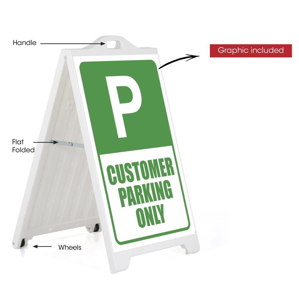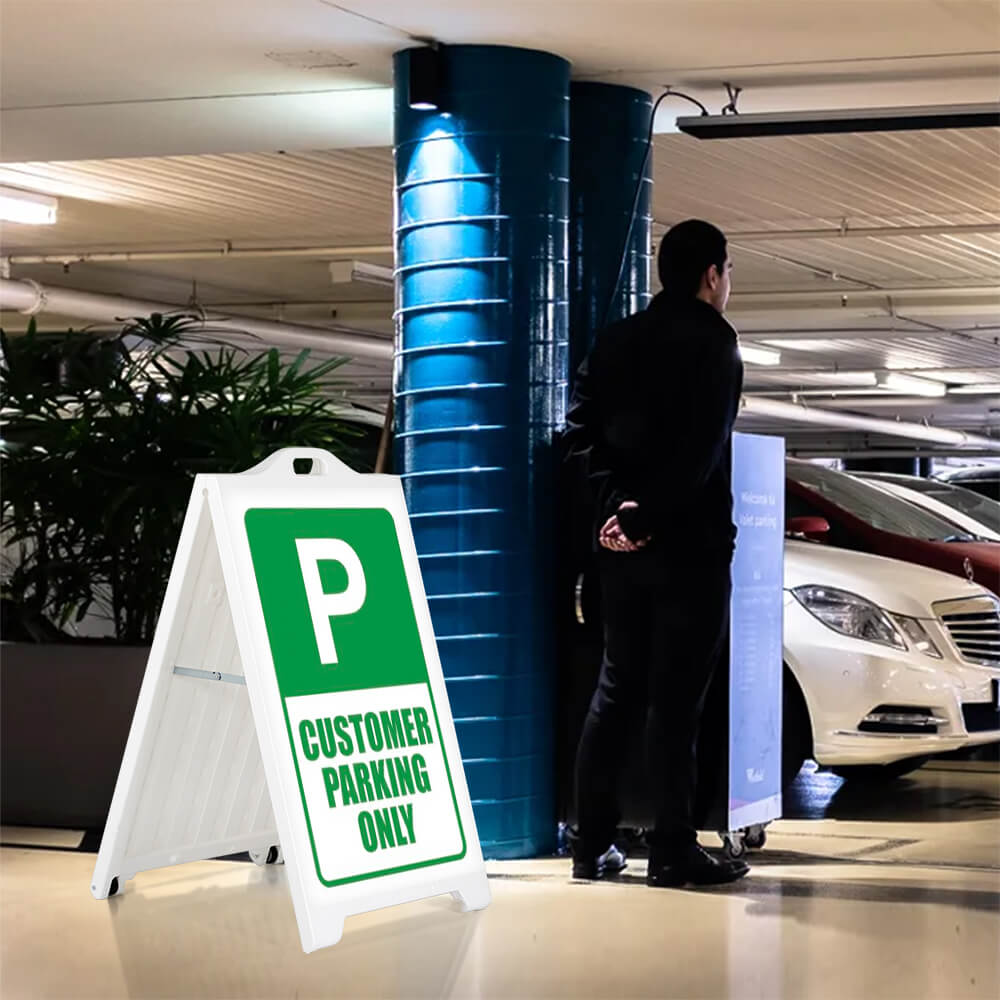 24×36 Double-Sided White A-Board Sidewalk Sign for Posters – Customizable Customer Parking Only Display