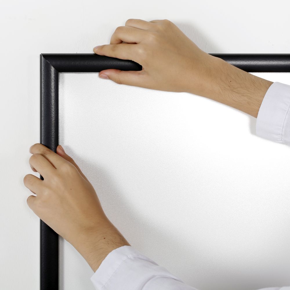These smart LED box snap frames have 1 inch lift up profiles in black matte color. Poster size is 24x36, mounts vertically or horizontally. You can change the sign, the poster on the wall, without having to take the LED light box off the wall. Wall mounting hardware is supplied with each frame. The frames simply open and close to change the poster. By its easy and quick use, wall mounted smart LED box is an ideal solution for frequently changing signs. The frames accept posters and paper signs up to 0.008 inch thick.Easy open smart LED box frames have anti-glare poster cover sheet. This non-glare overlay is to protect the poster from dirt and any damage as well as to prevent glaring.Each smart LED edge lit box is supplied with a set of 4 screws and 4 anchors to be mounted on the wall in either a portrait and landscape position. Also, each product has two sliding wall hangers to move hangers in portrait and landscape position.Each frame comes with an instruction sheet explaining how to set and use.Smart light box signs are high-end and attractive custom solutions for a wide range of indoor applications. These smart light boxes are only 0.75 inches in depth. The thin profile of the frame takes up little space, while the brightly illuminated display captures the attention of passersby. Power cord length is 98,43 inches. On / off switch and outer power supply provide long product life. Average lux range is 3000-3300. Power consumption is 41W/3.33A. High illumination is achieved by specially treated acrylic and provides a homogenous illumination. The 7/16 operating power supply has universal AC input and well protected against short circuit, overload and over voltage. The LED boxes saves up to 60% energy costs. They consume less energy since their LED lighting is lower voltage compared to other signage display frames in the market. FCC and UL certified, PAT tested. You cannot see the LED bulbs from outside, since they are embedded in the long sides of the frame. These LED boxes will get the attention of consumers easily wherever it is mounted.