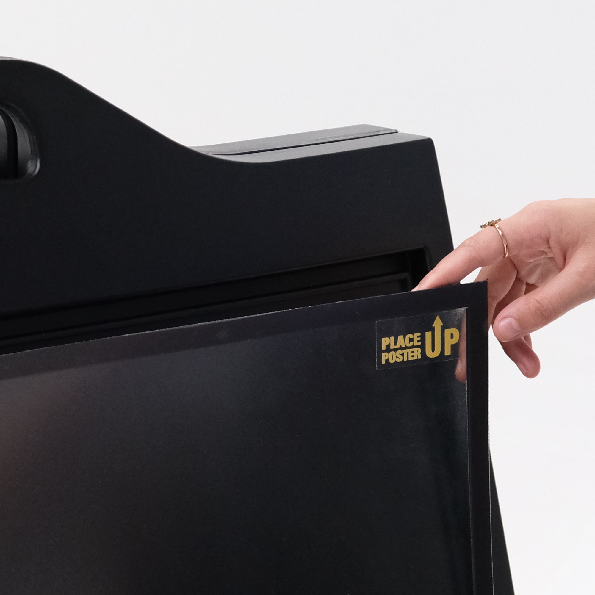 Provides maximum exposure for your signage. Display two 24x36 inch posters with ease. This sandwich board comes with double-sided Polypropylene panels, designed to securely hold your posters between two magnetic PET covers. This allows for quick and convenient poster changes while keeping your graphics protected and in place.
