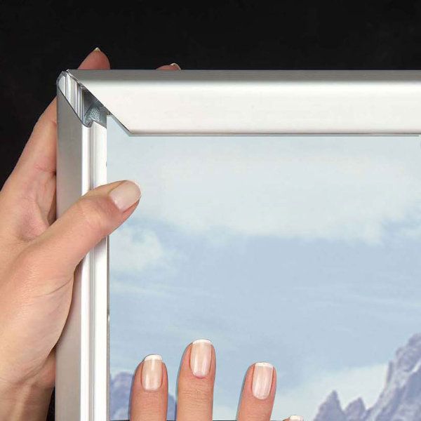 Enhance your large-scale poster displays with our premium poster frames, featuring a sleek natural silver-anodized finish. Designed with precision, the mitered corners add a touch of elegance to any setting. Each frame comes complete with essential wall mounting accessories, including 4 screws and 4 pegs, ensuring a secure and straightforward installation. For added convenience, optional hangers are available to facilitate easy mounting. Every frame is carefully packed individually in a sturdy cardboard box to ensure it arrives in perfect condition. Perfect for both personal and professional use, these frames are the ideal choice for showcasing your posters with style and durability.