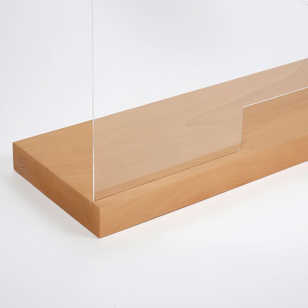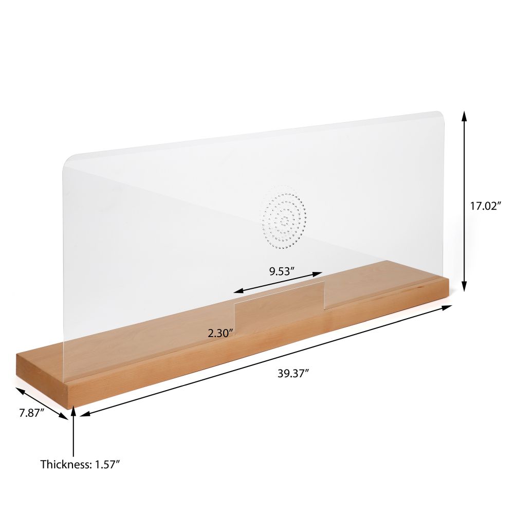 39.37″ Wide x 16.53″ High Clear Protective Shield with Speaker Cutouts and Natural Wood Base