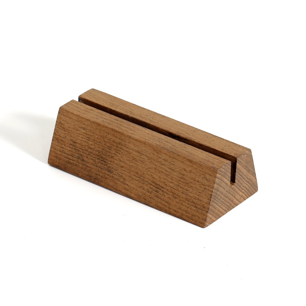 4.13″ Dark Wood Pyramid Card Holder Set – 10 Pieces in Box | Elegant Desk Organizer