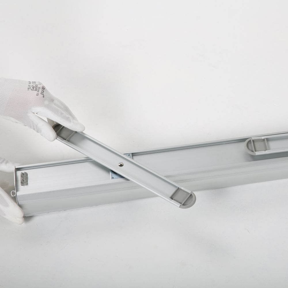 Enhance your trade show presence with our durable roll-up banner stands, designed to withstand wear and tear for long-lasting use. The sturdy base securely houses the rolled banner, top clamp rail, pole, and feet, ensuring they remain protected when not in use. Effortlessly roll the poster into the base by inserting the pin into the side and rotating it. Please note, the banner is not included. Perfect for exhibitions, conferences, and promotional events, these banner stands offer a professional and convenient display solution.