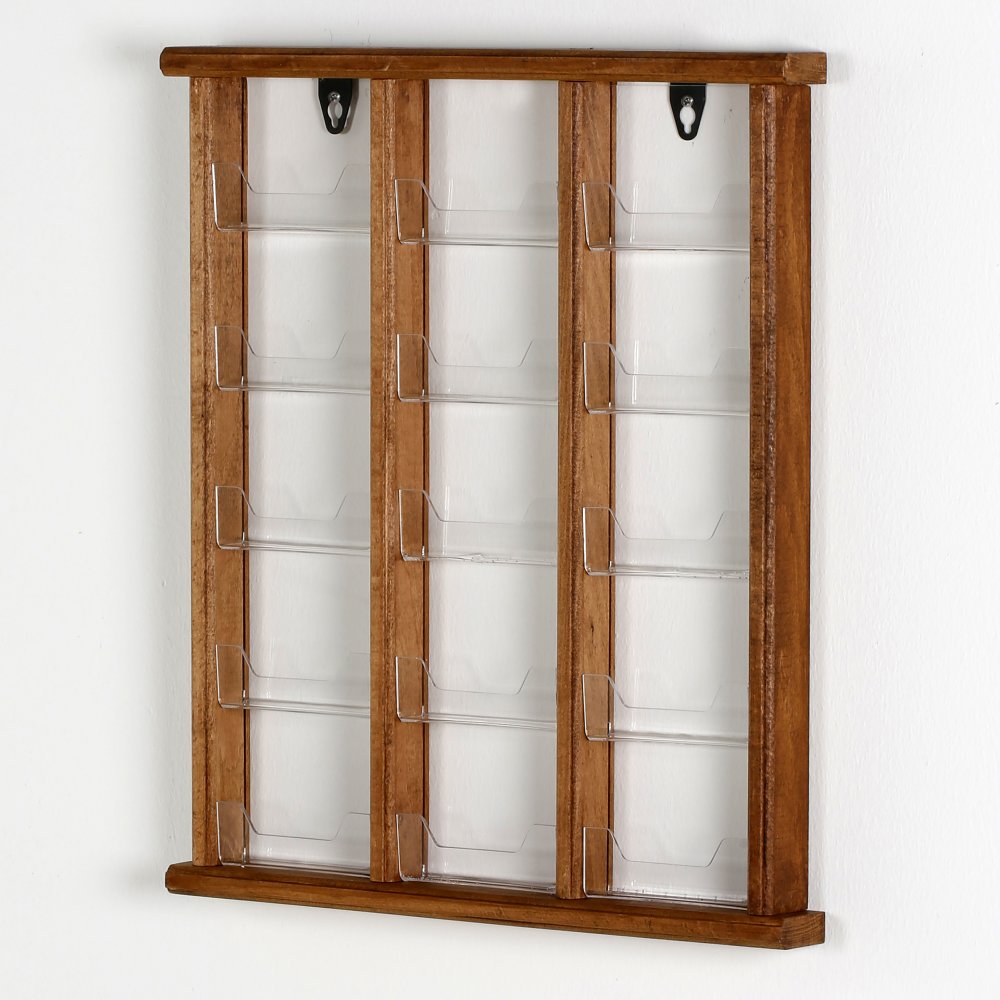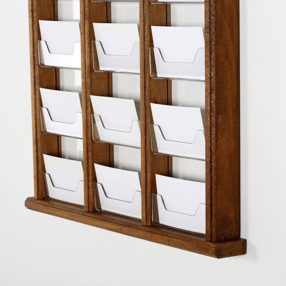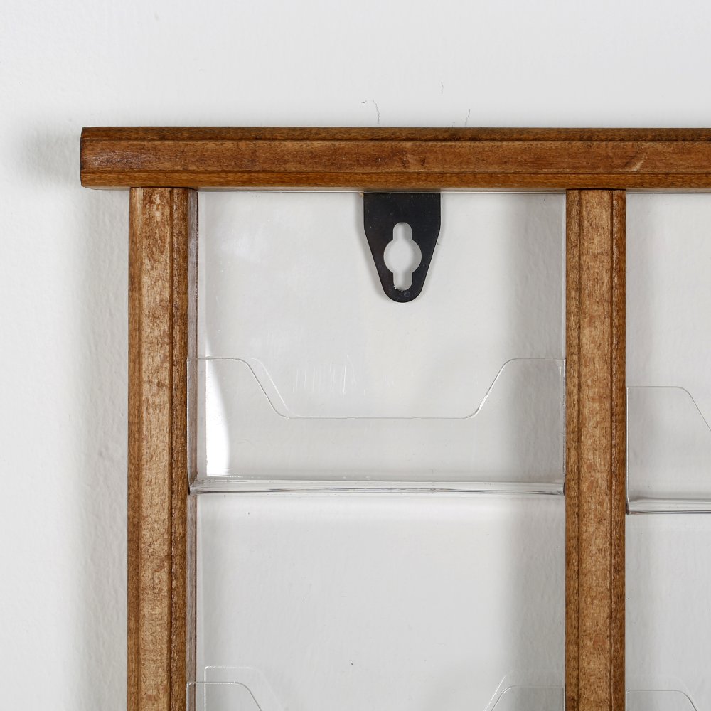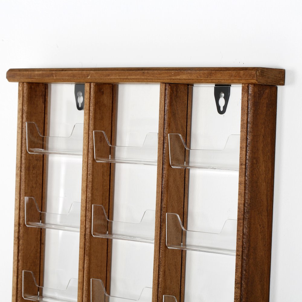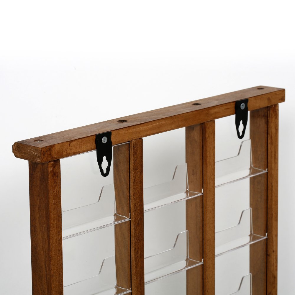 Enhance your organizational space with our Dark Wood Wall Mount Wooden Card Holder, expertly crafted to store and display information packages in one convenient location. Constructed from high-quality, lacquered dark wood, this card holder exudes elegance and durability. The clear acrylic pockets offer a full view of stored flyers or brochures, ensuring easy access and visibility. Designed with tiered pockets stacked vertically, it maximizes space efficiency, making it ideal for offices, banks, schools, hospitals, hotels, and more. Each pocket features inner dimensions of 3.54″ x 0.72″ x 3.07″, perfectly accommodating standard-sized cards and brochures. Elevate your organizational needs with this stylish and functional wall-mounted card holder.