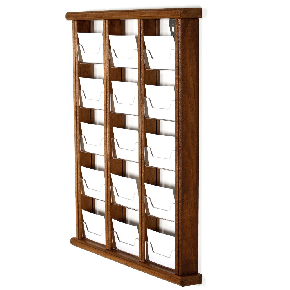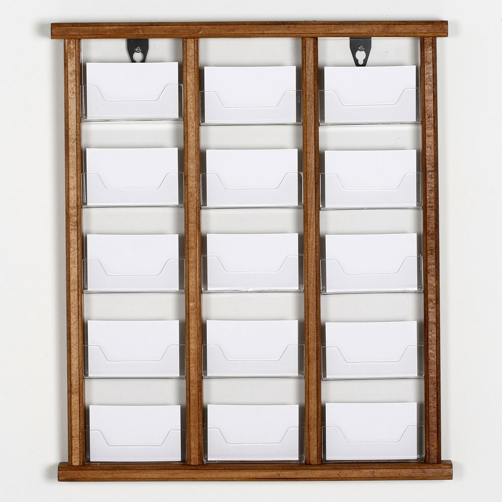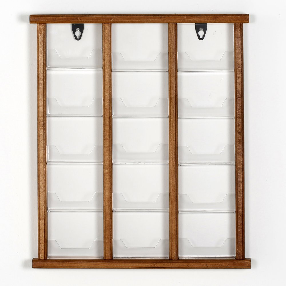 5-Tier Dark Wood Wall-Mounted Wooden Card Holder with 15 Pockets (3×5)