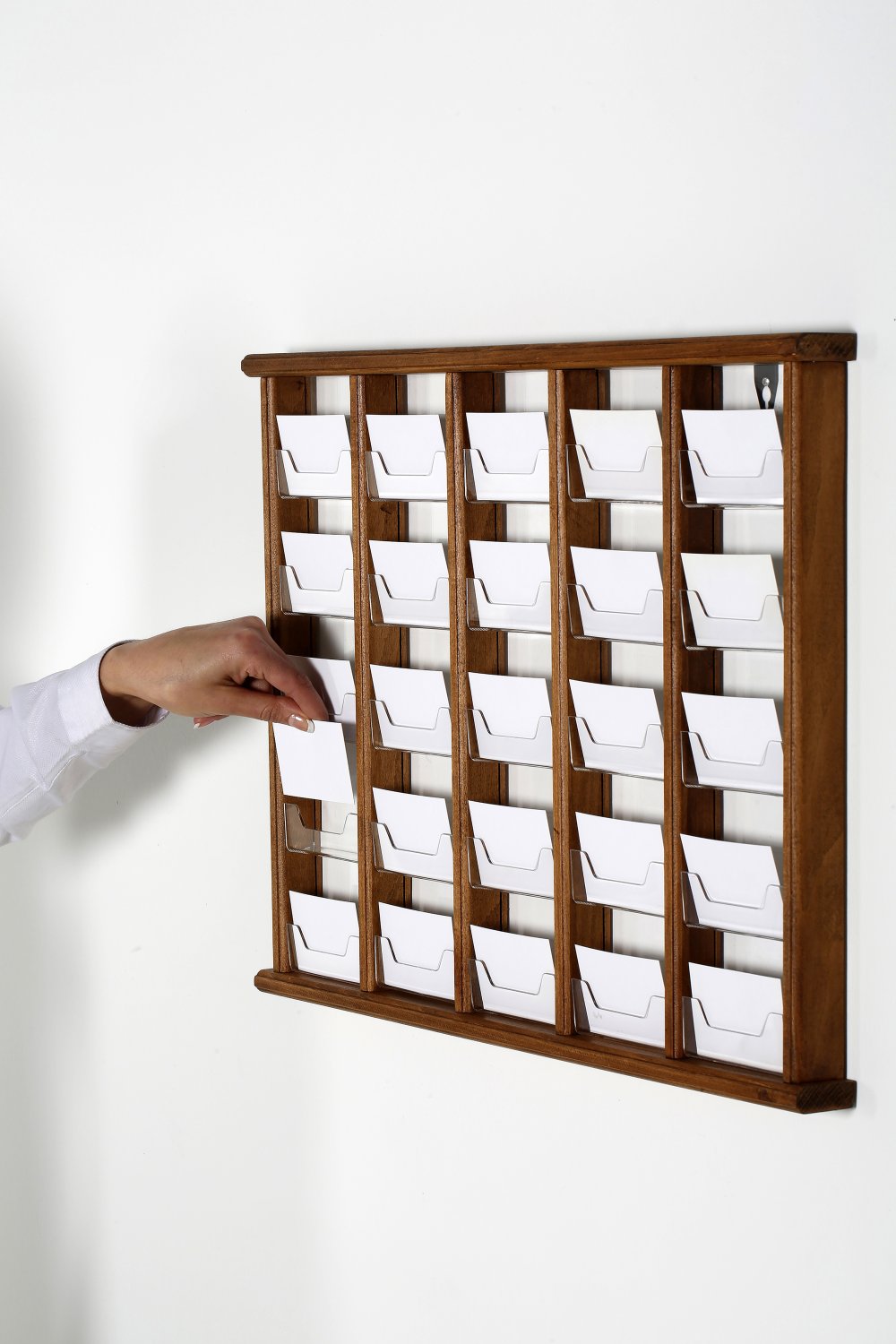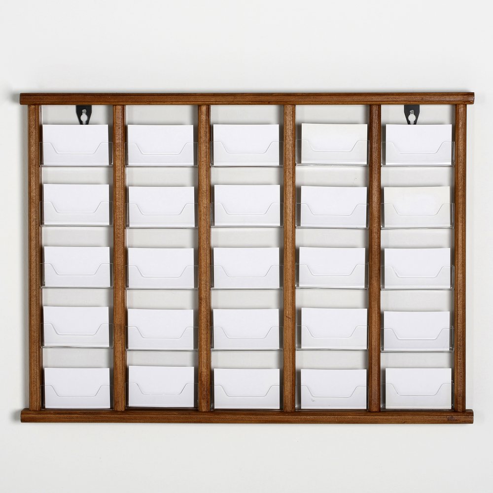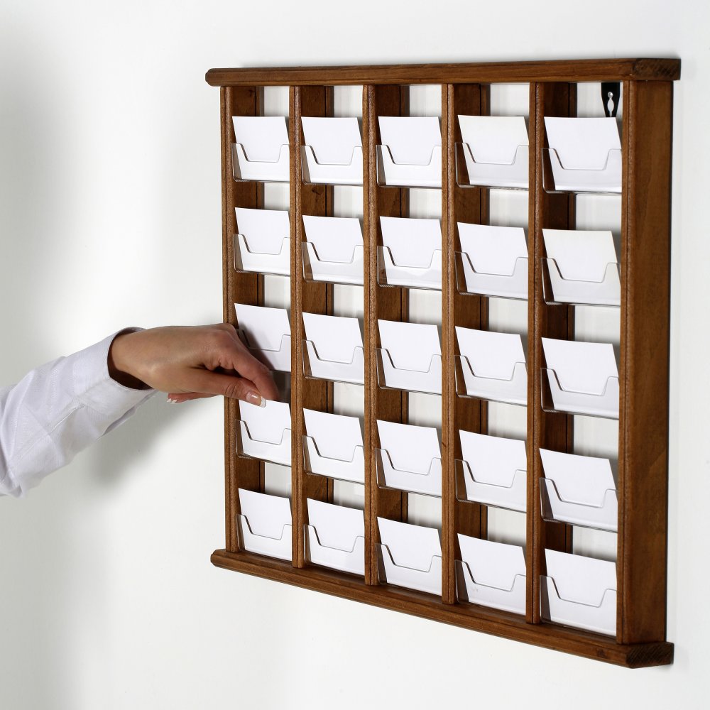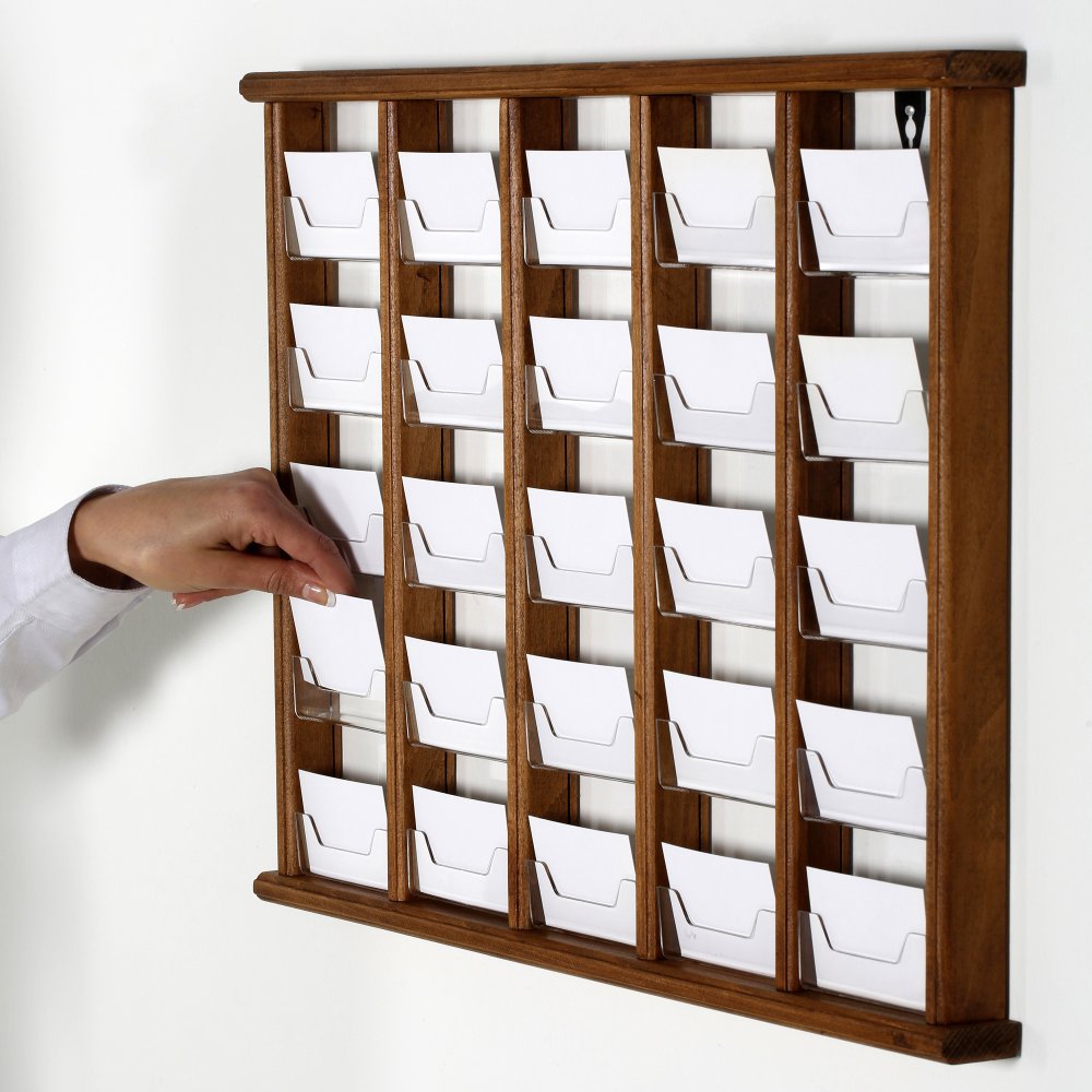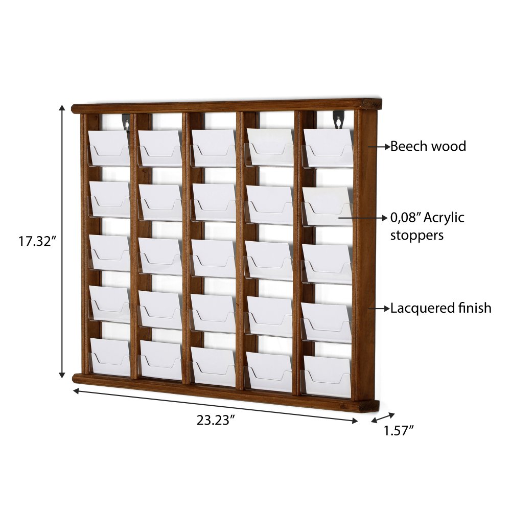 5-Tier Dark Wood Wall-Mounted Wooden Card Holder with 25 Pockets, 5×5 Design