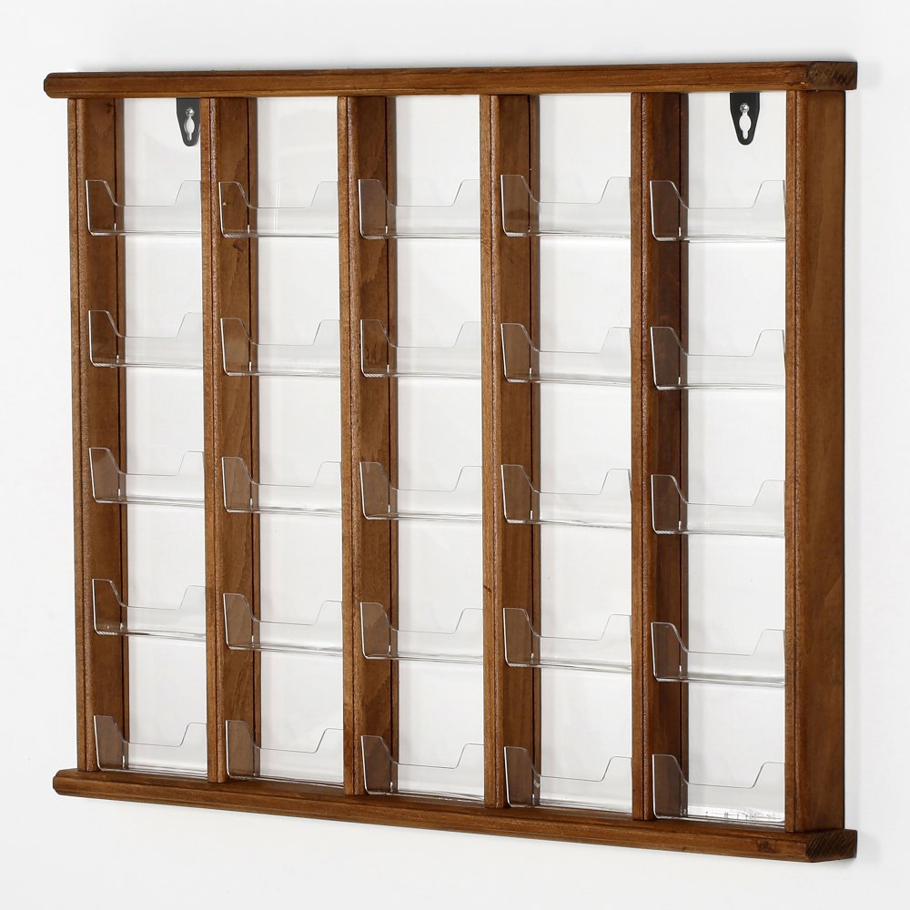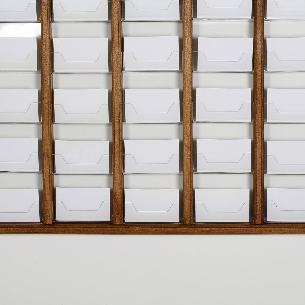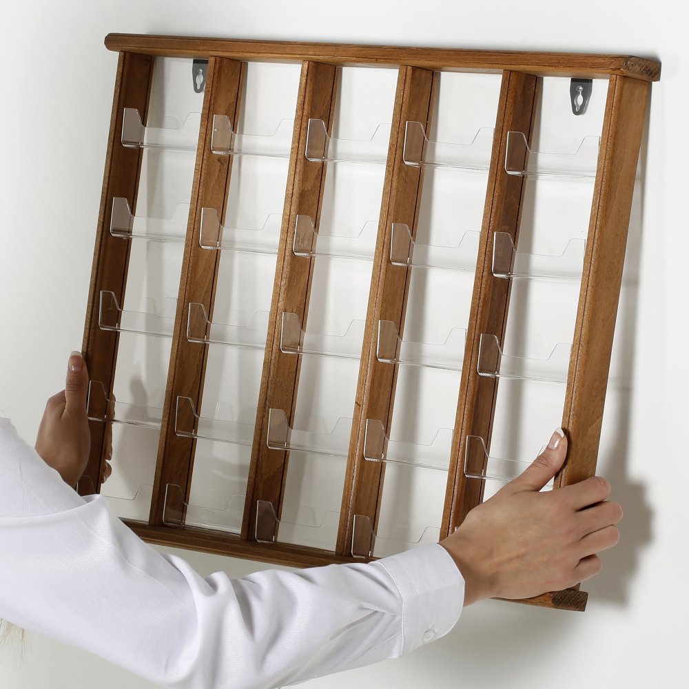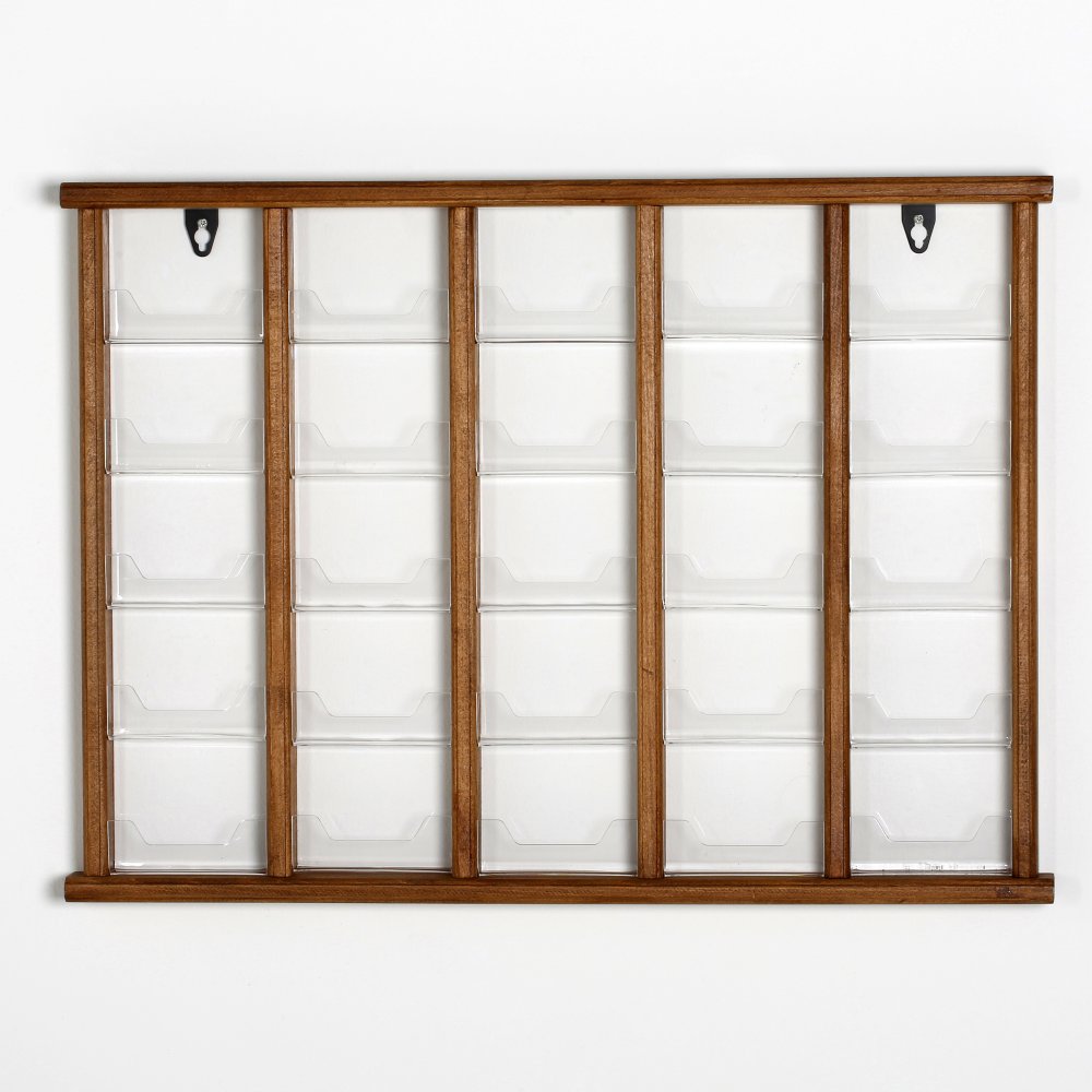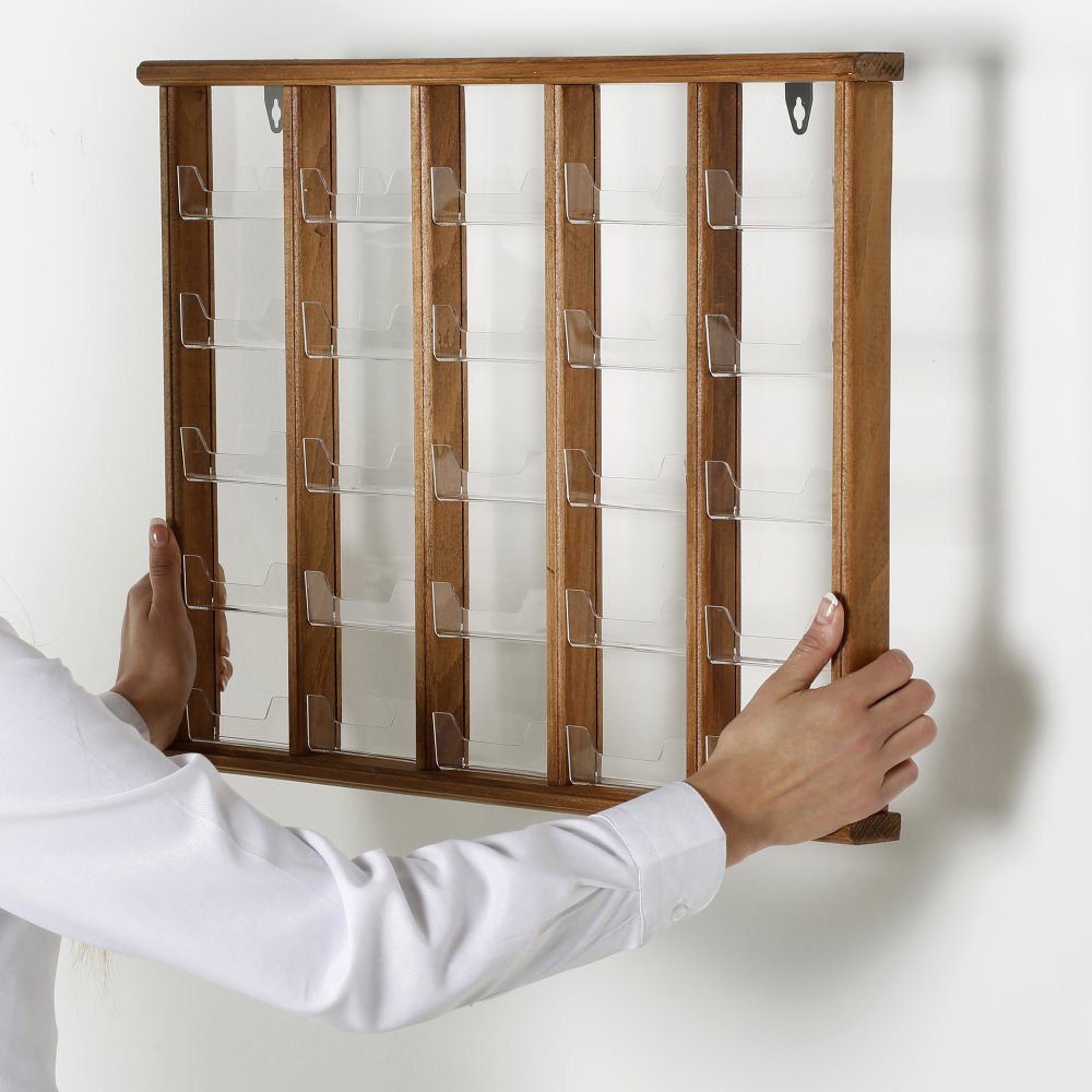 5-Tier Dark Wood Wall-Mounted Wooden Card Holder with 25 Pockets, 5×5 Design