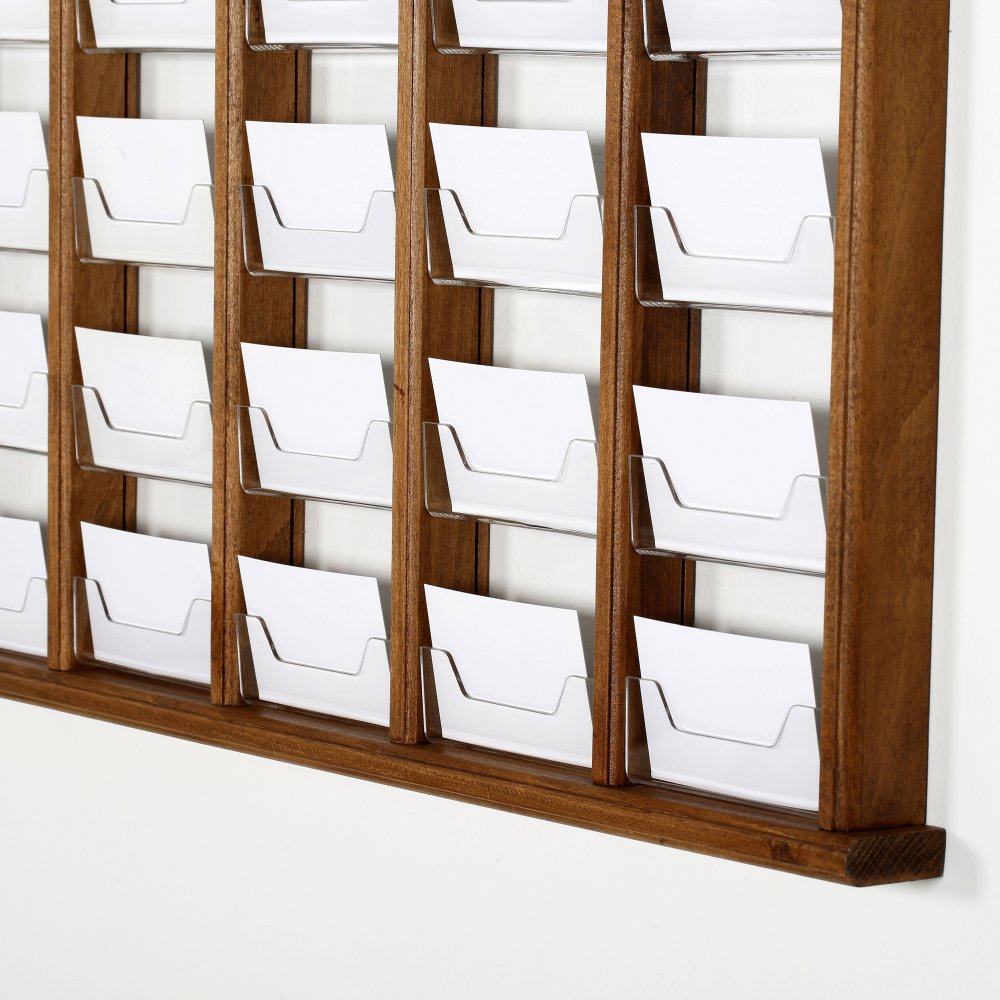 These rustic wall card holders are great for organizing mail, messages, announcements and more! Each shelf comes with hardware to mount on the wall. Not only are these shelves convenient but they provide a stylish rustic dark wood look.With 25 pockets organizing will be a breeze!