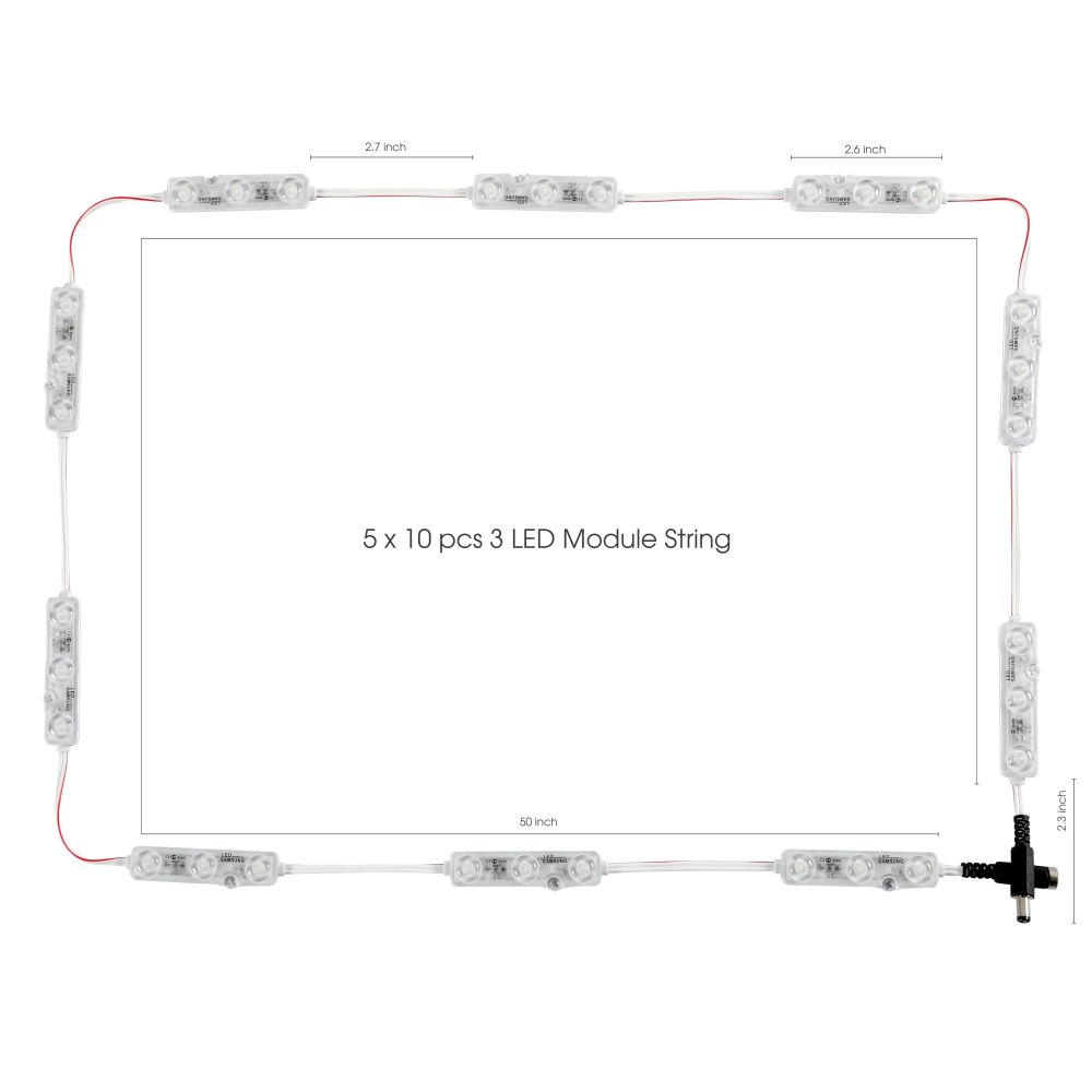 5×10 Pack 2835 3-LED Modules, 3000K Warm White, 100LM, 160° Lens for Letter Signs & Billboards Backlight
