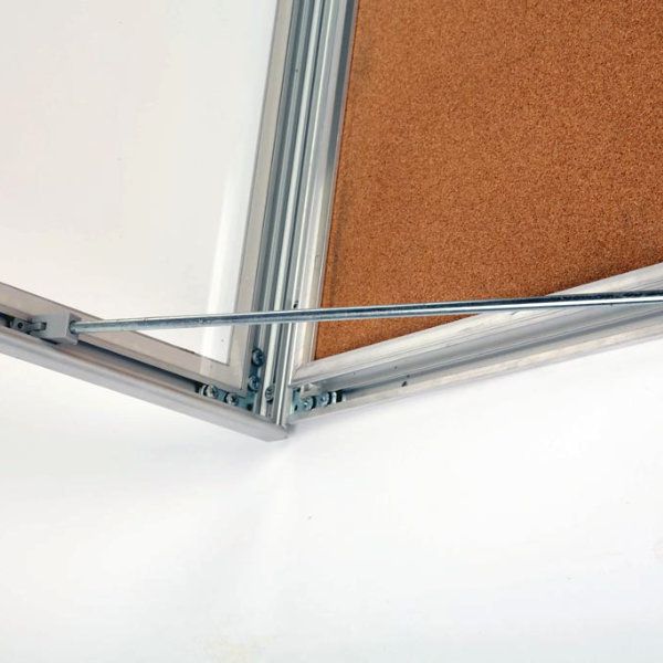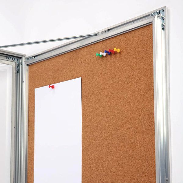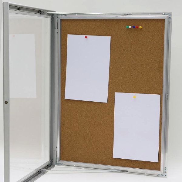 Enhance your office or commercial space with our enclosed lockable cork bulletin boards, the perfect and functional solution for displaying notes and posters. This outdoor cork board, measuring 6x(8.5x11) inches, features a robust aluminum frame in a sleek silver matte finish. Designed for versatility, it can be mounted either vertically or horizontally to suit your needs. The bulletin board case has a depth of 1.06 inches and is equipped with a shatter-resistant polycarbonate door that opens to a convenient 90 degrees. Two door stays at each end ensure the door remains open when needed. For added security, the board includes a discreet side lock that is hidden from the front view, allowing you to change signs without removing the noticeboard from the wall. Each board comes with wall mounting hardware and two key sets for the single lock variation. This outdoor tack board is an ideal solution for environments where signs need to be updated frequently, offering both ease and efficiency.