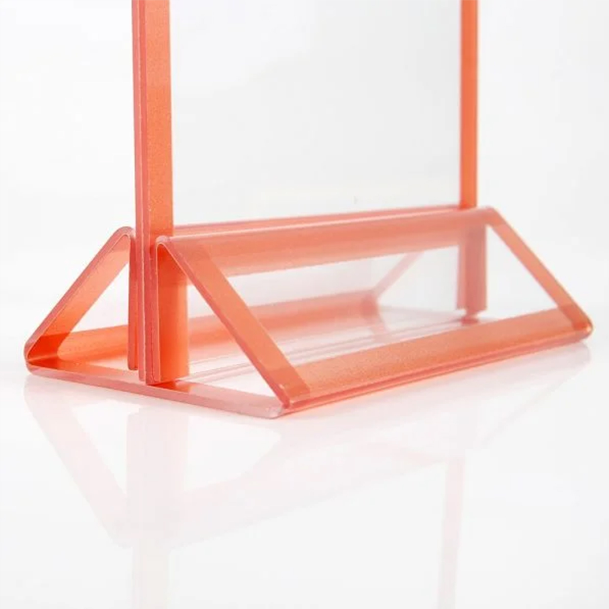 Introducing our Double-Sided Acrylic Sign Holder with Triangle Base – the perfect desktop solution for showcasing your company images, advertisements, menus, and promotions. This uniquely designed menu holder features a sturdy triangle base, ensuring stability and easy visibility from both sides. Crafted for convenience, the acrylic cover allows for effortless loading of your materials from the bottom, making updates quick and hassle-free. Ideal for restaurants, retail stores, and offices, this versatile sign holder enhances your display with a sleek, professional look. Elevate your promotional efforts with this essential desktop accessory.