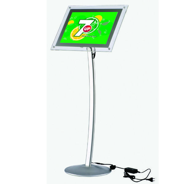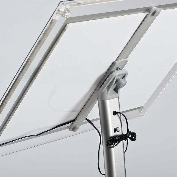 Introducing our versatile Show Boards, the perfect announcement signs for showcasing your advertisements, posters, or graphics. This sleek, silver powder-coated LED floor stand is designed for easy assembly and effortless use. Featuring edge-lit, embedded LED bulbs, the illumination is seamless and discreet, ensuring your message stands out without visible distractions. The robust heavy steel base guarantees stability, making it ideal for high-traffic areas. Enhance your display with this durable and stylish solution, perfect for any business or event setting.