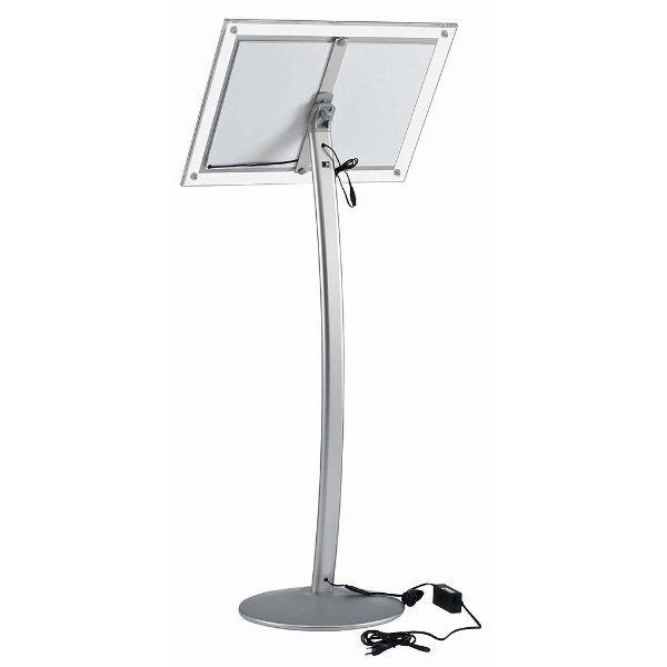 8.5×11 Silver Curved LED Floor Sign and Menu Display Stand for Restaurants and Events