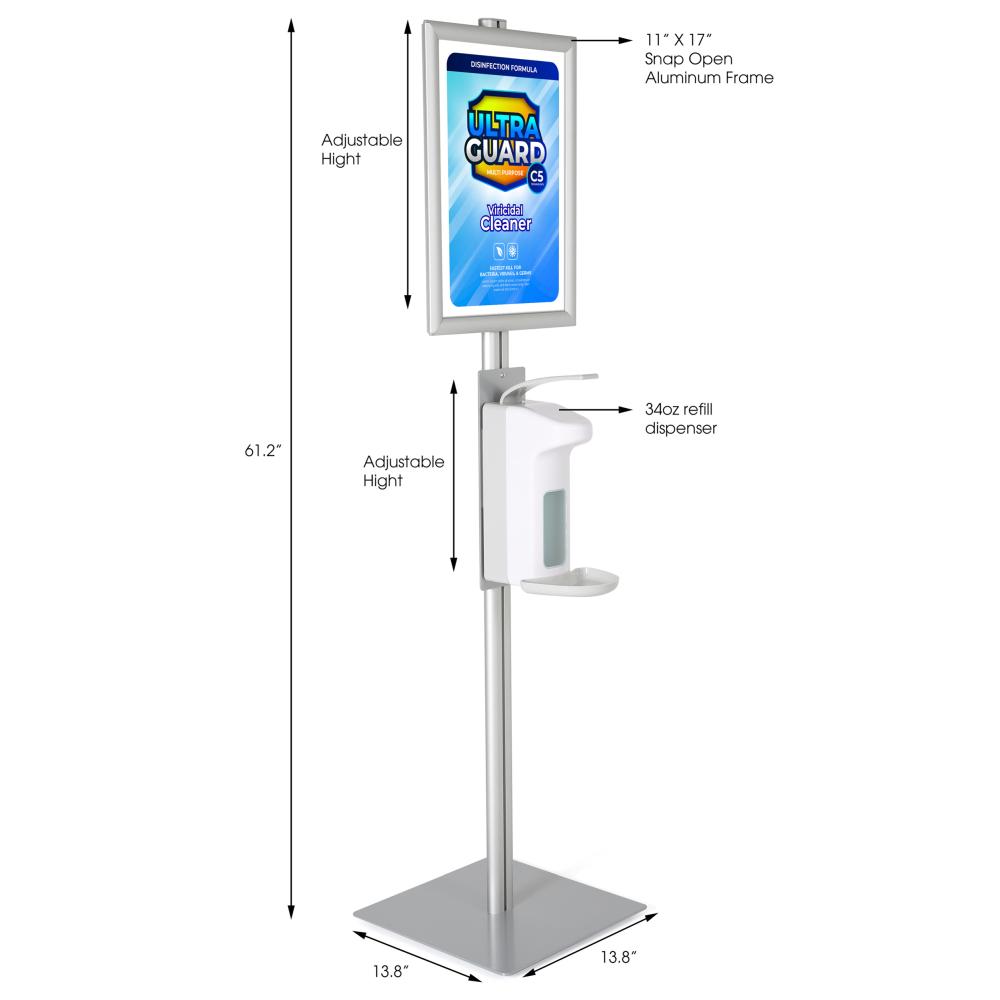 Adjustable Hand Sanitizer Floor Stand with 11×17 Inch Opti Snap Frame – 1000 mL (33.8 oz.) Dispenser, Gel Not Included