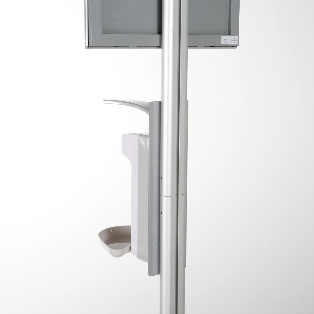 Enhance your hygiene protocols with our Free Standing Sanitizer Dispenser, designed to provide easy access to sanitizing products and safeguard your customers and employees from harmful viruses, bacteria, and germs. This mobile sanitizing station features a free-standing post, allowing you to conveniently relocate it as needed. Its sturdy, heavy base ensures stability, while the adjustable dispenser height accommodates various user preferences. Please note that sanitizing gel is not included. Additionally, the front-loading snap frame supports 11x17 inch (A3) advertisements, posters, or signs, making it perfect for promotional displays. Ideal for high-traffic areas, this versatile dispenser is a must-have for maintaining a clean and safe environment.