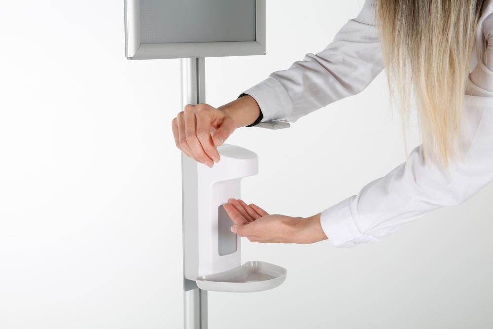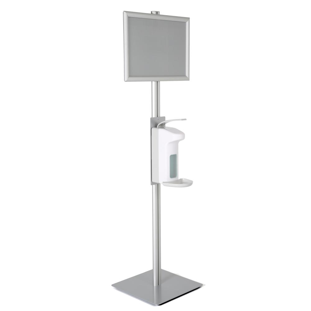 Enhance your hygiene protocols with our Free Standing Sanitizer Dispenser, designed to provide easy access to sanitizing products and safeguard your customers and employees from harmful viruses, bacteria, and germs. This mobile sanitizing station features a free-standing post, allowing you to conveniently relocate it as needed. Its sturdy, heavy base ensures stability, while the adjustable dispenser height accommodates various user preferences. Please note that sanitizing gel is not included. Additionally, the front-loading snap frame supports 11×17 inch (A3) advertisements, posters, or signs, making it perfect for promotional displays. Ideal for high-traffic areas, this versatile dispenser is a must-have for maintaining a clean and safe environment.