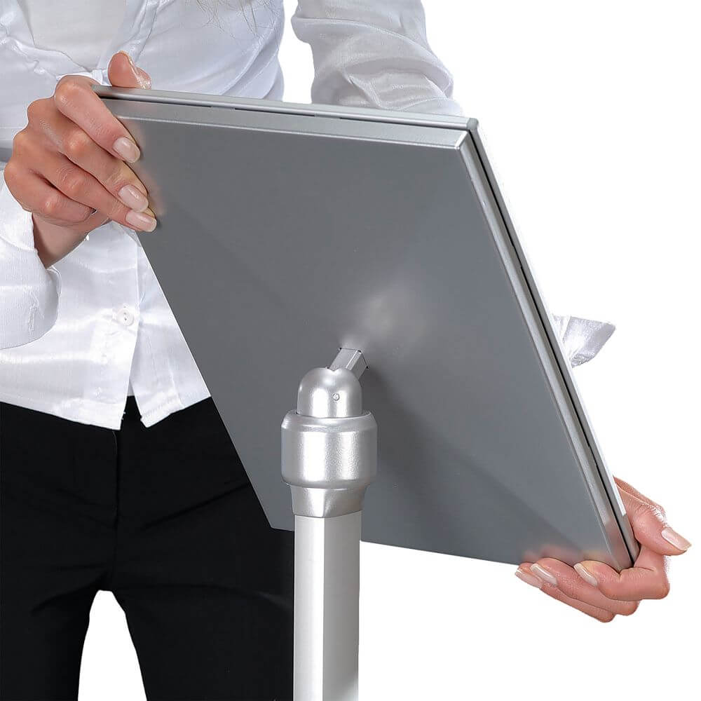 Introducing our innovative and stylish Flexible Sign Holder, designed to capture attention in high-traffic areas. This modern and exquisite sign holder features a flexible design that enhances its visual appeal. The telescoping frame allows for easy height adjustment, ensuring your advertisement is always at the perfect eye level. With a sturdy, heavy base, this sign holder guarantees stability, even in bustling environments. The anti-glare PET cover protects your media from direct light and dust, keeping your message clear and vibrant. Ideal for retail spaces, trade shows, and events, this sign holder is a must-have for effective advertising. Patent: US 29/295.750 – US D 597.764S.