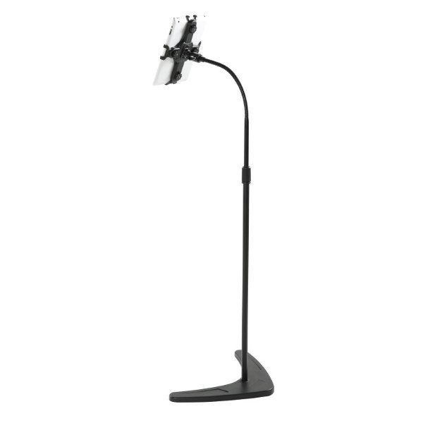 Black Adjustable Height Floor-Standing Tablet Stand for iPad and Kindle with Flexible Head