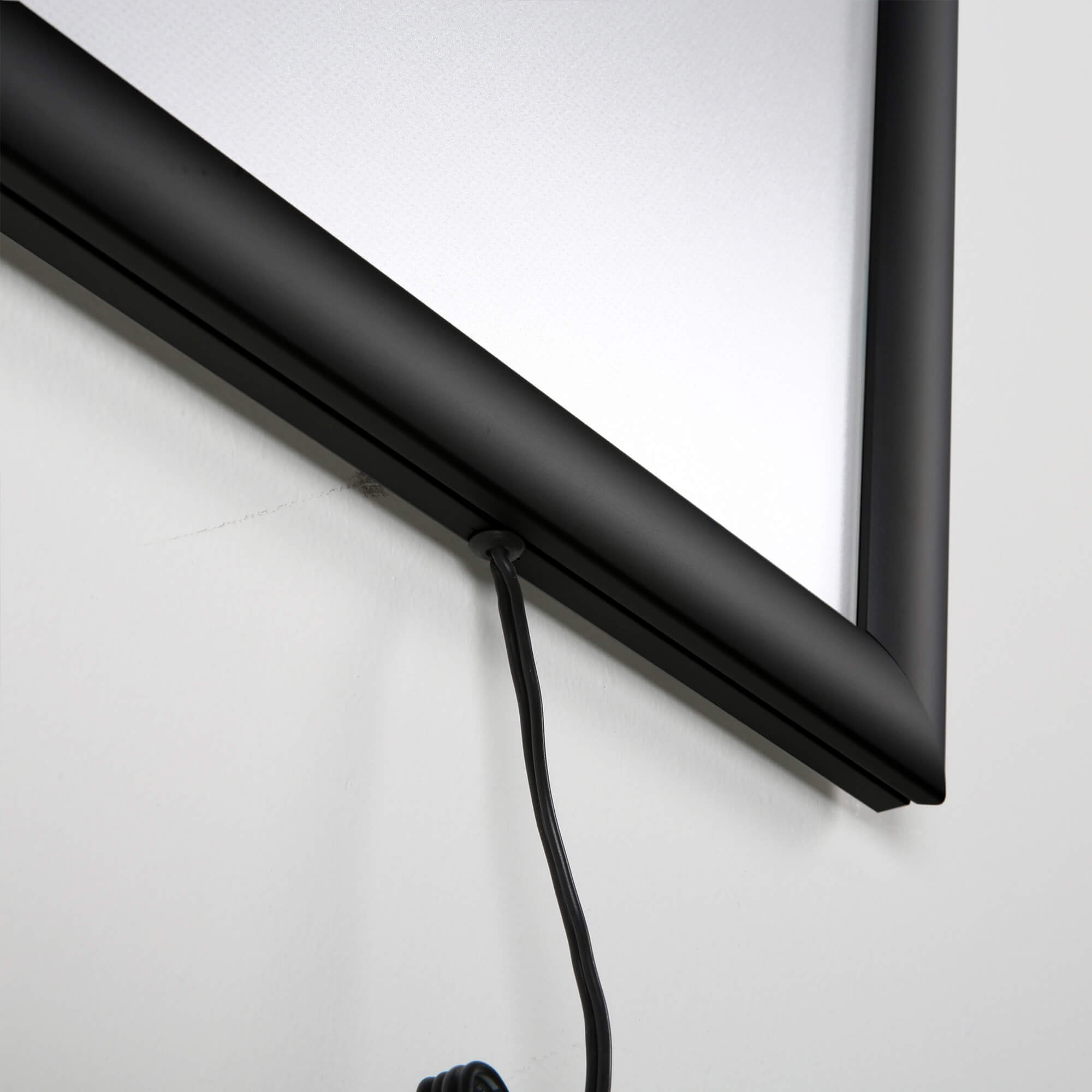 Enhance your customer engagement with our Ceiling Hanging Snap Frame, designed for both practicality and elegance. This frame features LED illumination achieved through specially treated acrylic, ensuring uniform and powerful lighting. The pre-treated light-guided panels effectively diffuse light, providing a bright white illumination at 2200 LUX and 6500K. With a generous power cord length of 137 inches, this snap frame is perfect for any display setting. Ideal for retail environments, exhibitions, and promotional displays, this ceiling hanging frame combines functionality with style to make your message stand out.