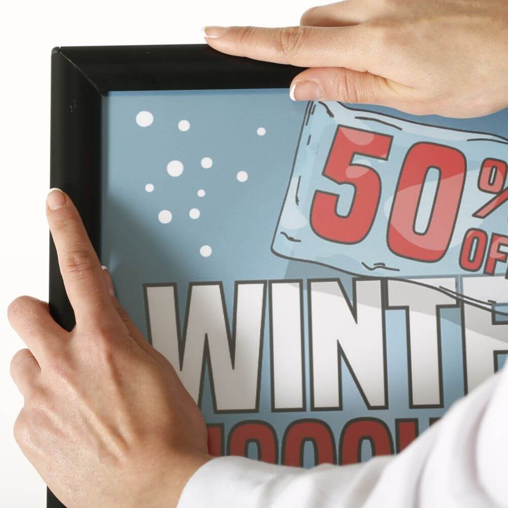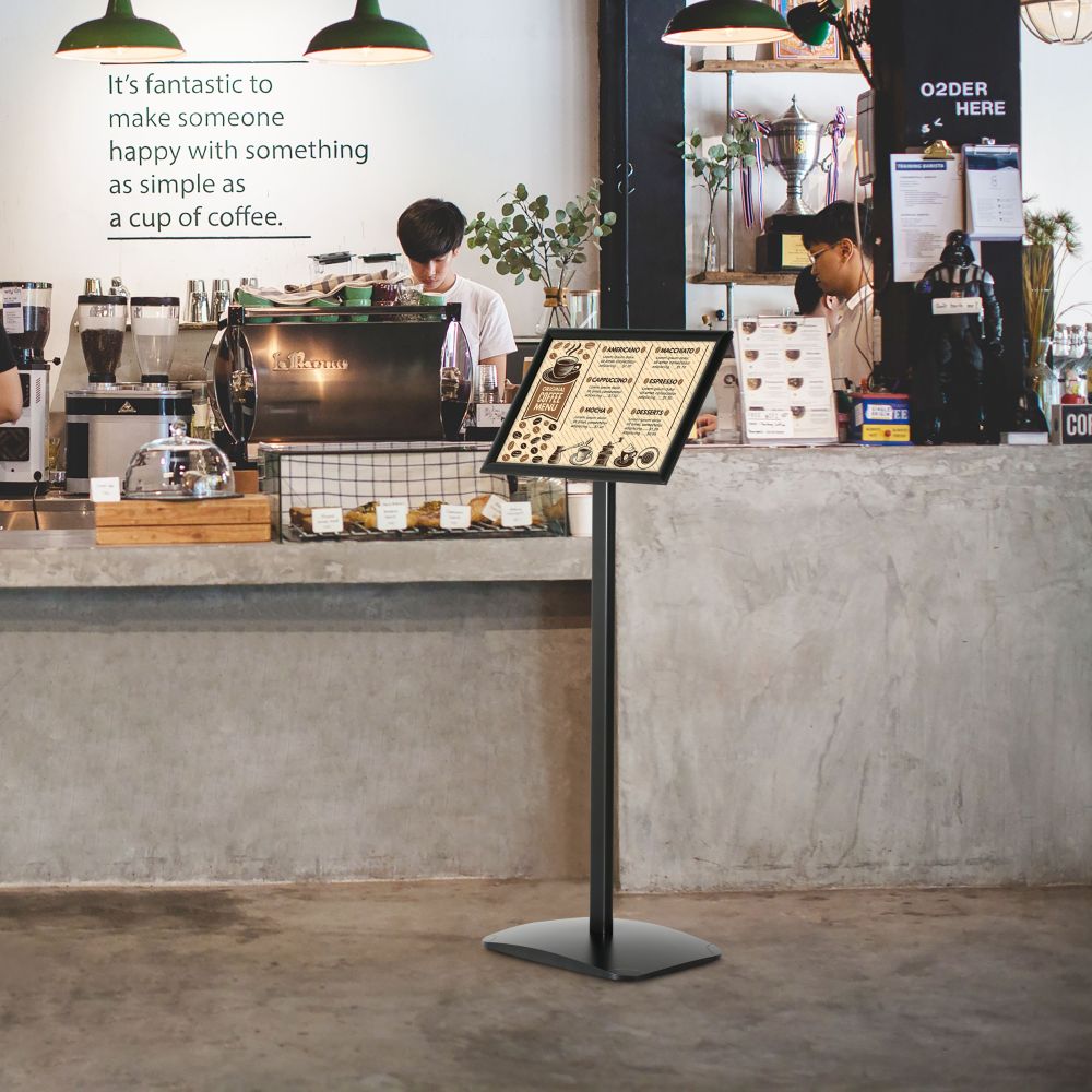Black Aluminum Restaurant Advertising Sign Post, 11×17, Reusable & Durable with Mitred Corners
