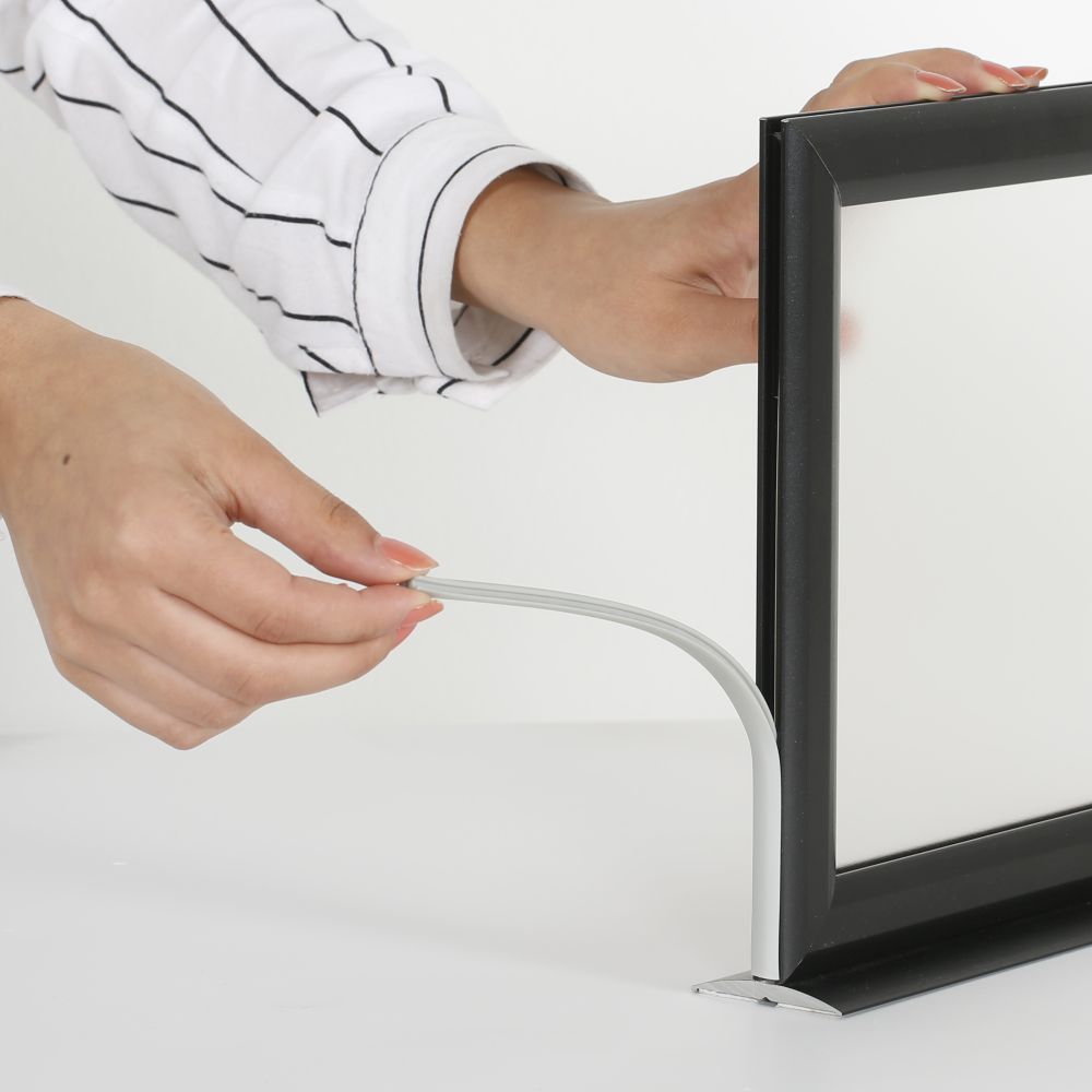 Introducing our innovative counter stand slide-in frame, designed for effortless insert changes. Simply slide your materials in and out with ease. This model includes two durable PET covers for added protection, a secure plastic wick on the open side, and sturdy double-sided tapes at the base for stability. Perfectly suited for portrait orientation, this frame is an ideal choice for showcasing your content in a professional and organized manner. Enhance your display with this practical and user-friendly slide-in frame, perfect for retail environments, trade shows, and more.