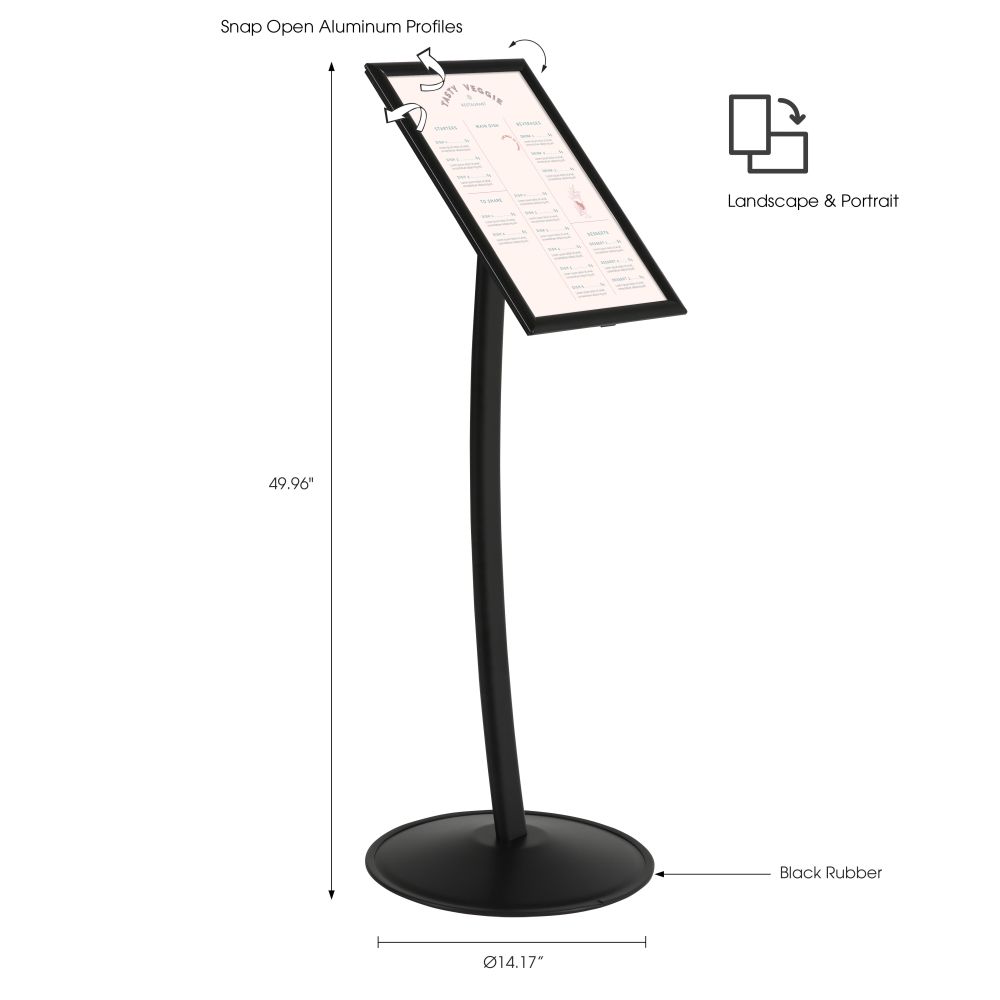 Black Floor-Standing Pedestal Sign Holder for Restaurant Menus – 11×17 Display Board