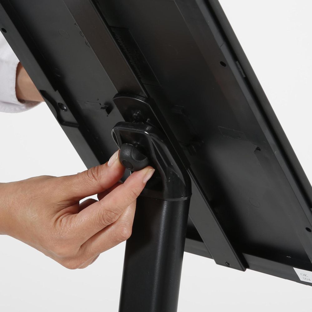 Introducing our innovative Curved Sign Holder, designed to captivate attention in high-traffic areas. This stylish sign holder features a modern and exquisite curved design, perfect for enhancing any display. The versatile rotating head allows for easy adjustment, enabling you to showcase your advertisements in either portrait or landscape orientation. Its sturdy round metal base ensures stability, while the anti-glare PET covers protect your media from direct light and dust, keeping your content clear and vibrant. Ideal for retail environments, trade shows, and office spaces, this sign holder is a must-have for effective and eye-catching presentations.