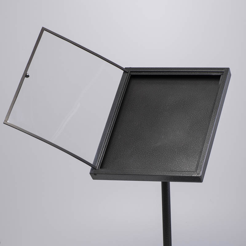 Black & Gray Patterned Metal Enclosed Floor Standing Bulletin Menu Board Pedestal Holder – Fits 4 (8.5×11) Inch Displays