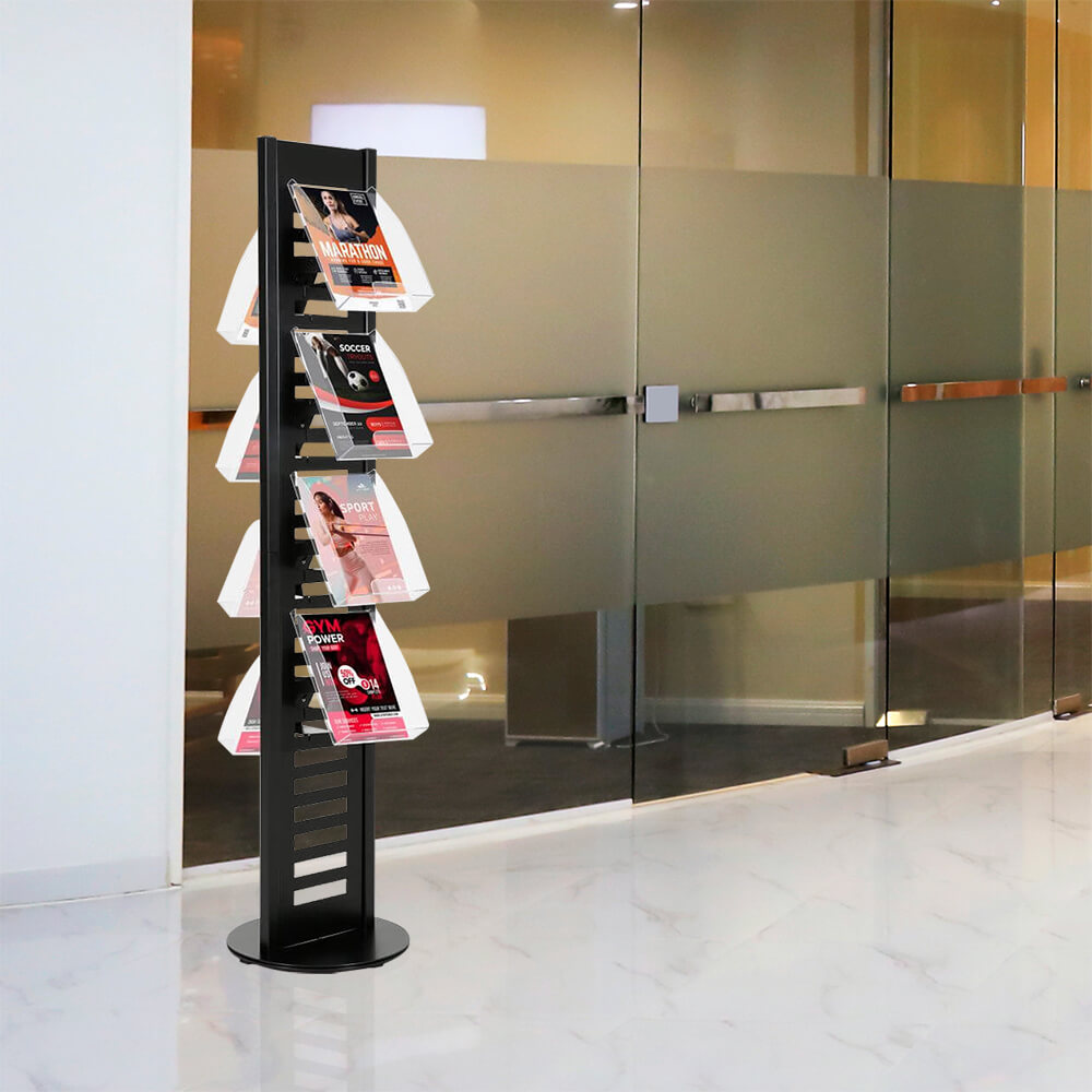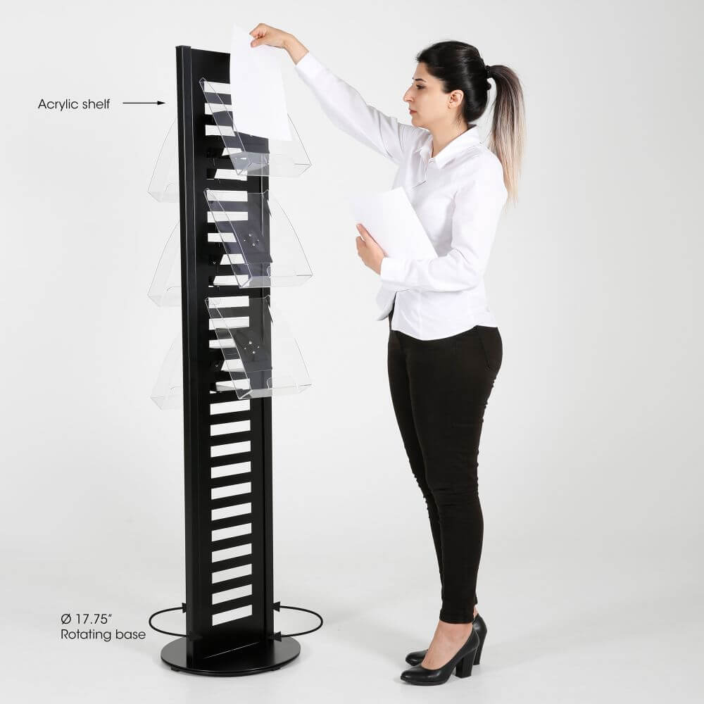 Black Heavy Duty Rotating Literature Rack with 8 Acrylic Shelves for 8.5×11 A4 Displays
