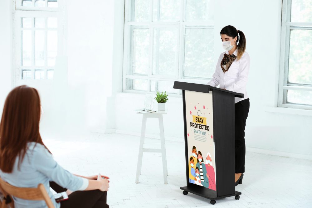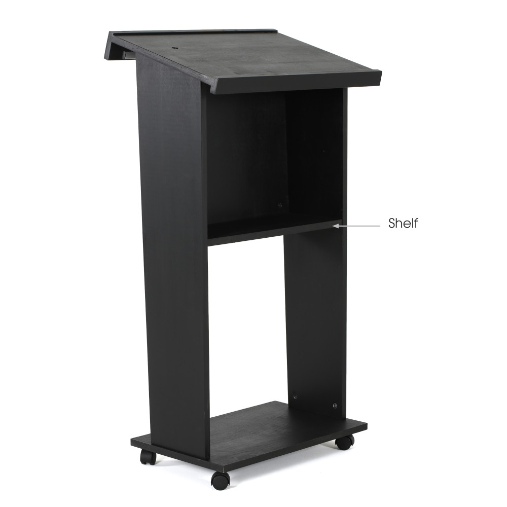 Black Plywood Podium with 4 Locking Caster Wheels – 45″ Tall Stand-Up Lectern for Presentations