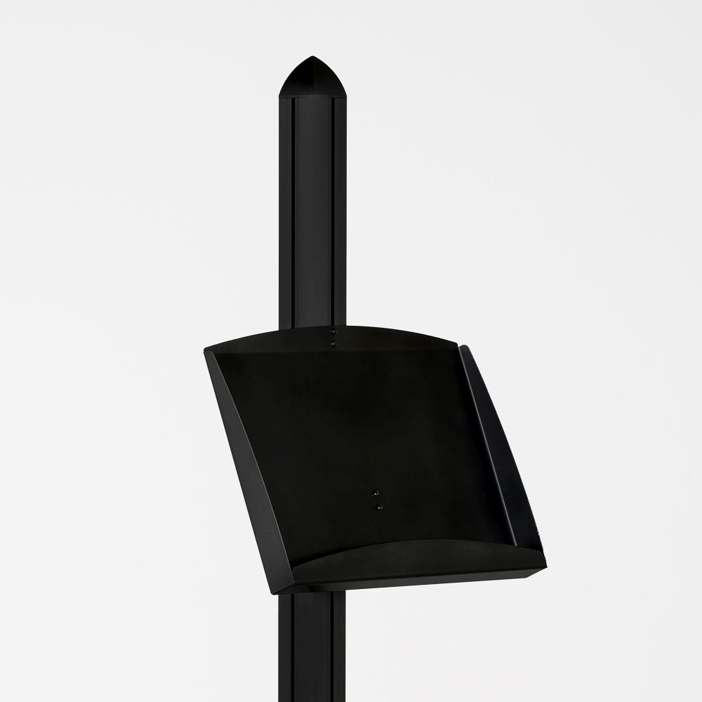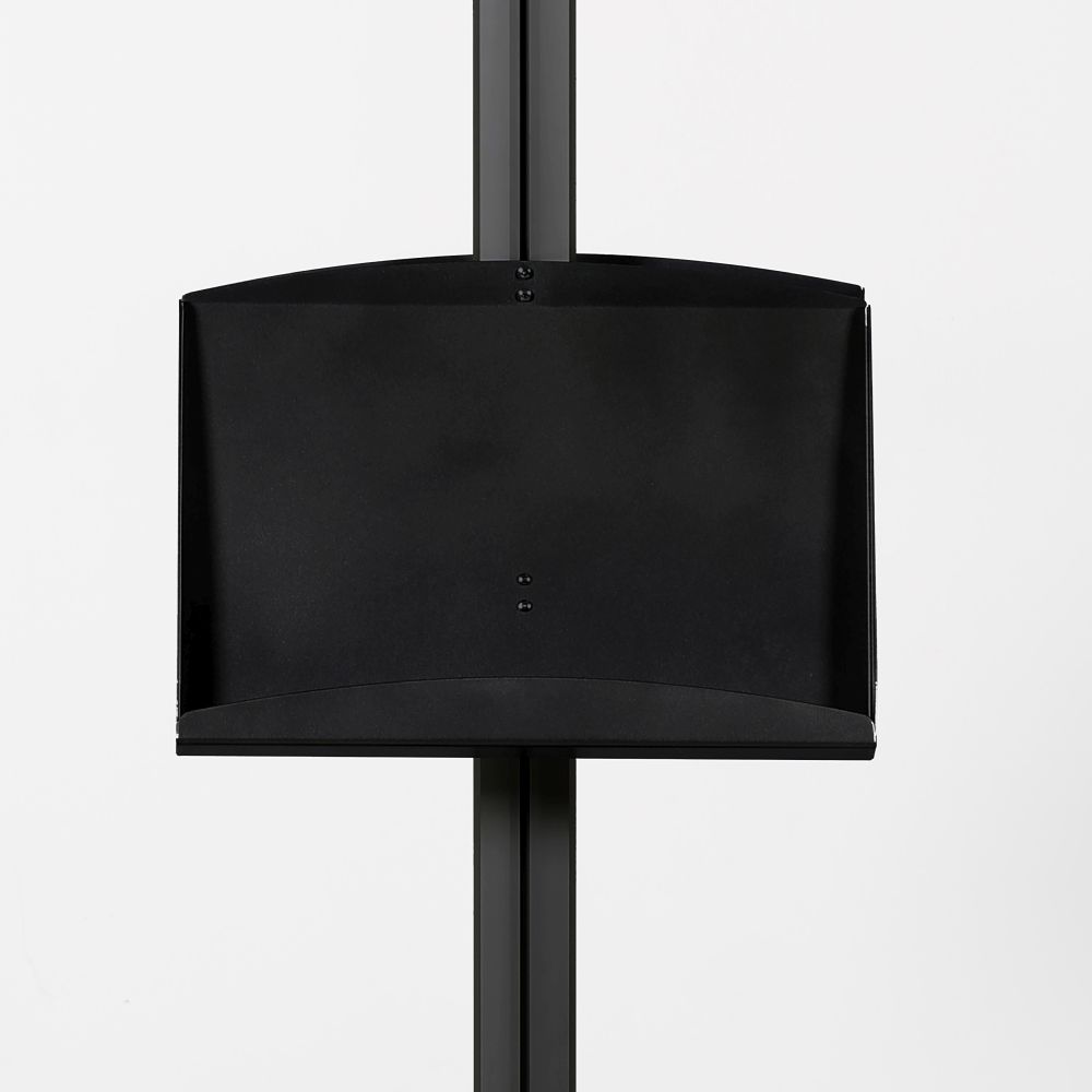 Enhance your retail or exhibition space with our versatile Free Standing Display Stand. This sleek, single-sided display features a 1-inch profile thickness snap frame designed to hold an 8.5″ x 11″ poster, ensuring your promotional materials are prominently showcased. Complementing the snap frame are three durable steel shelves, each measuring 2 x 8.5″ x 11″, providing ample space for brochures, flyers, or product samples. The entire unit is finished in a sophisticated black, offering a modern and professional look that seamlessly integrates into any environment. Ideal for trade shows, retail stores, or office lobbies, this display stand combines functionality with style, making it an essential tool for effective visual communication.