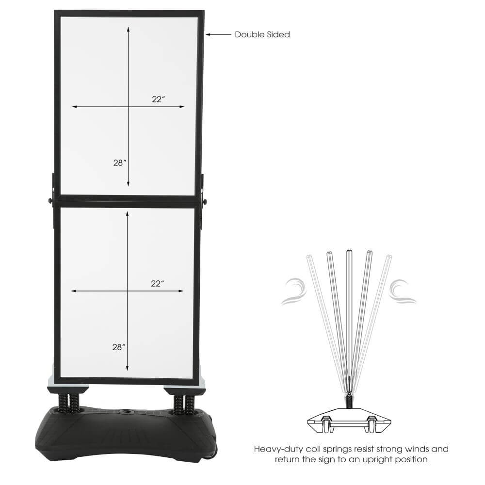 Black WindPro Slim 2-Tier Weather-Resistant Outdoor Sidewalk Pavement Sign Holder, 22×28 Inch