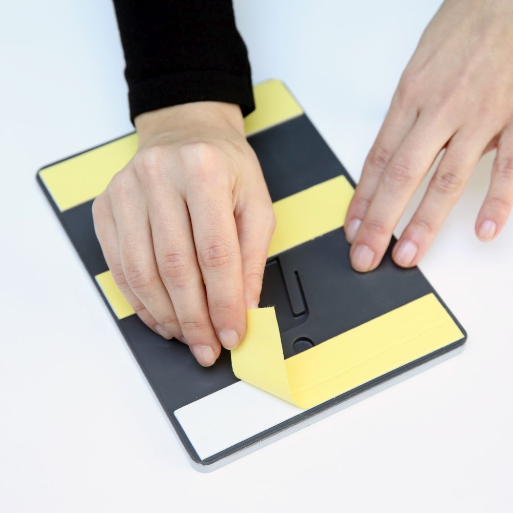 Crafted from high-quality plastic material, this product is both durable and long-lasting. Featuring a chrome-coated plastic frame and a leather-textured backing, it offers an elegant and sophisticated appearance. The design incorporates a unique combination of tactile text and printed text, enhancing its functionality and aesthetic appeal. Perfect for those seeking a stylish and resilient option, this product is ideal for various applications.