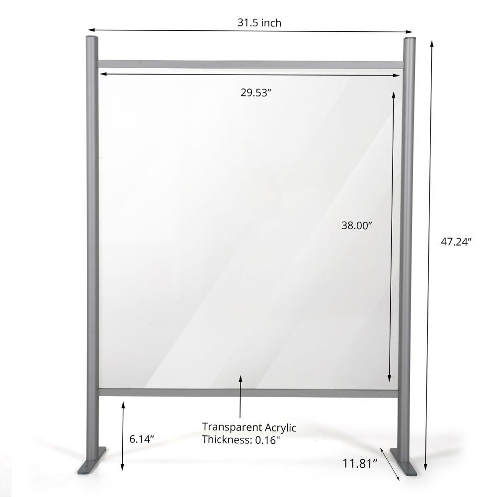 The screen is made of top-quality acrylic plexiglas material it has a great transparency. Very easy to install********* you can place these screens side by side to create a protective guard for desks in public use********* receptions********* pharmacies and spaces for workers. To raise awareness********* two social distancing stickers are included on each order.Our products are manufactured and imported from Europe. This Sneeze barrier is made of the finest materials while providing the highest level of quality. Plexiglas acrylic plate is resistant to shatter. The aluminum bars makes the product durable yet light for easy carrying. Anodized finish will protect the bars from dust and light scratches.Suitable for indoor and outdoor use. This cough guard can be used in a multipurpose setting********* whether this may be at your place of business********* office********* markets********* etc. It can be used on checkout desks********* or as a retail shop transaction window********* or as an office counter window.
