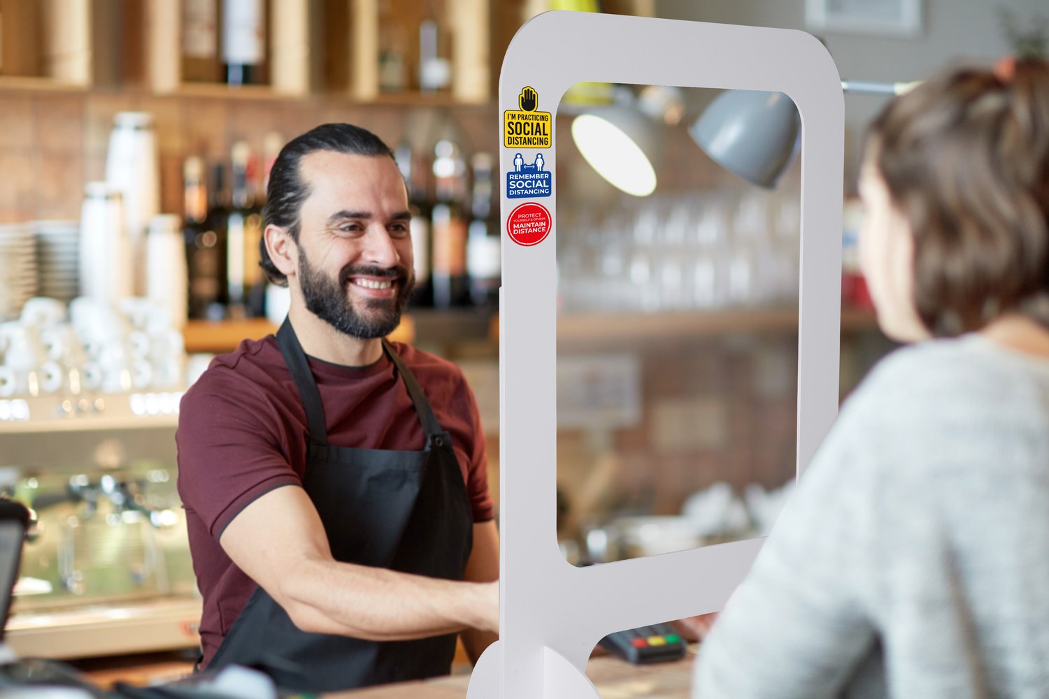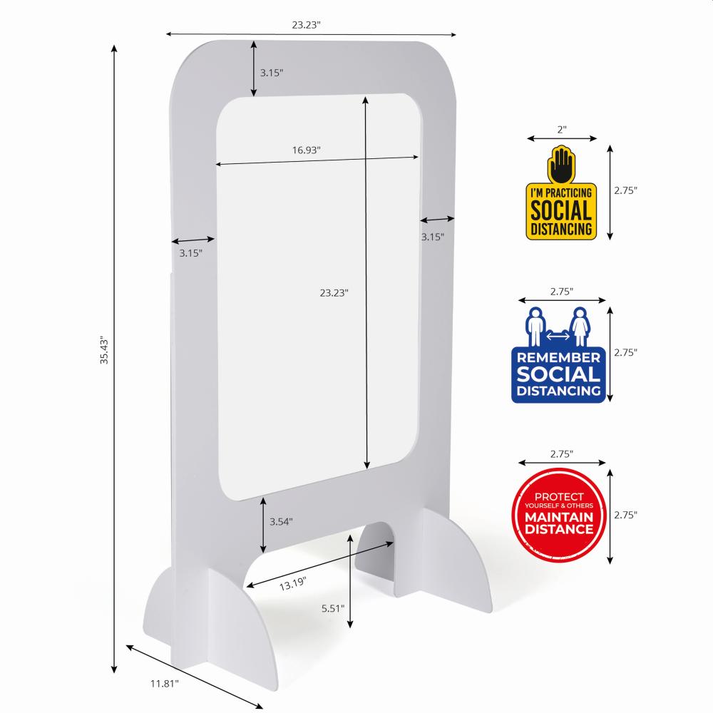 Made of top-quality PET. It has great transparency. Light and very easy to install, you can place these screens side by side to create a protective guard for desks in public use, receptions, pharmacies and spaces for workers. To raise awareness, social distancing sticker set is included for each guard.Our products are manufactured and imported from Europe. This Hygienic Barrier is made of 0.20 inch (5mm.) PVC foam and 0.02 Inch (0.5mm.) PET, the finest materials while providing the highest level of quality. It is light, easy to carry and assemble.Suitable for indoor use. It can be used in a multipurpose setting, whether this may be at your place of business, office, markets, etc. It can be used on checkout desks, or as a retail shop transaction window, or as an office counter window.