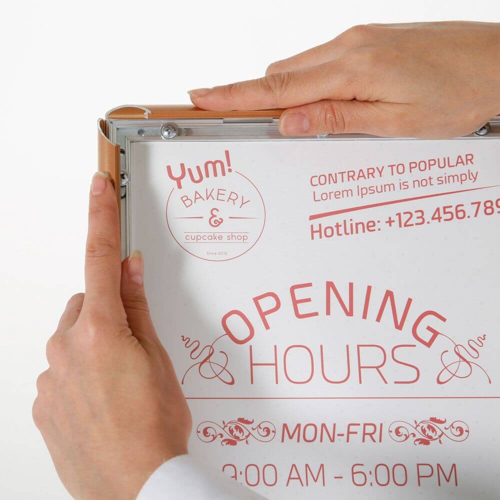 Introducing our innovative Curved Sign Holder, designed to captivate attention in high-traffic areas with its sleek and modern aesthetic. This stylish display features a unique curved design that adds a touch of elegance to any setting. The versatile rotating head allows for seamless transitions between portrait and landscape orientations, enhancing the visibility of your advertisements. Equipped with anti-glare PET covers, this sign holder ensures your media remains protected from direct light and dust, maintaining clarity and longevity. The convenient Snap Frame design enables quick and effortless media changes—simply flip open all four profiles, replace the old media with the anti-glare PET cover, snap the sides shut, and you’re all set. Perfect for businesses looking to make a lasting impression, this Curved Sign Holder is a must-have for effective and stylish advertising.