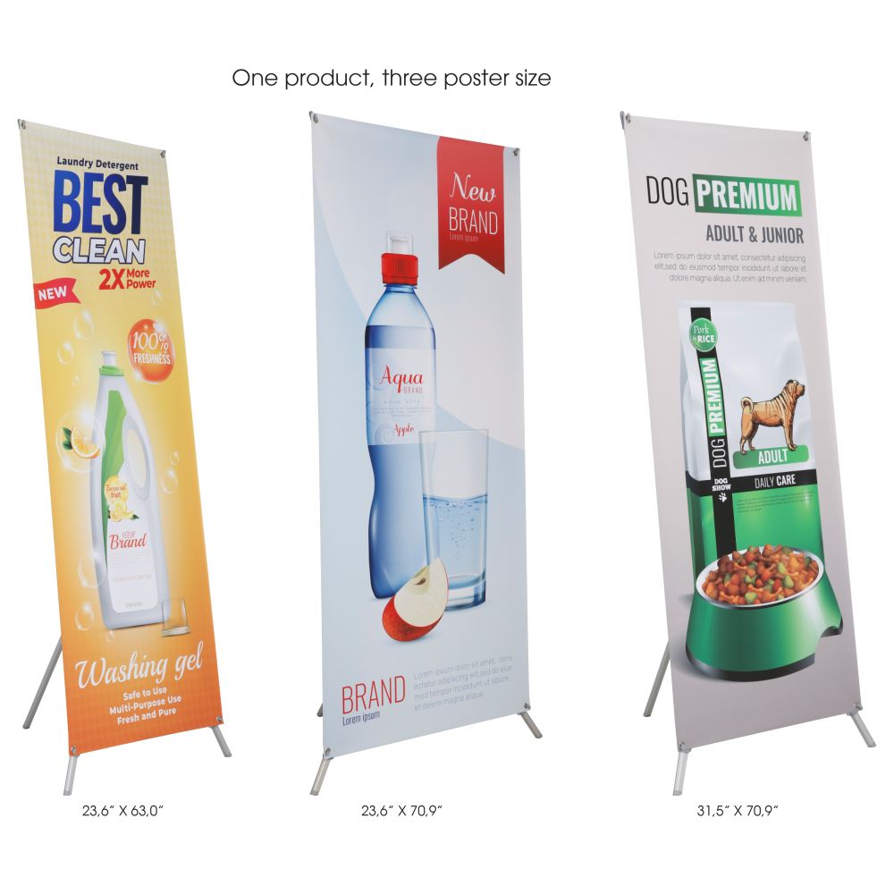 Introducing our versatile Floor-Standing Heavy-Duty Tripod X-Frame Banner Stand, perfect for showcasing your promotional materials with ease and style. This height-adjustable banner stand is designed to accommodate banners in sizes 23.6″ x 63.0″, 23.6″ x 70.9″, and 31.5″ x 70.9″, making it an ideal choice for various display needs. Crafted for durability and stability, this stand is perfect for trade shows, retail displays, and events. Additionally, you have the option to order spare banners in other sizes to suit your specific requirements. Enhance your marketing efforts with this reliable and adaptable banner stand solution.