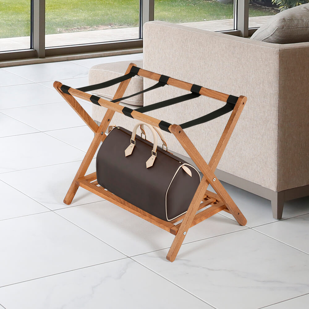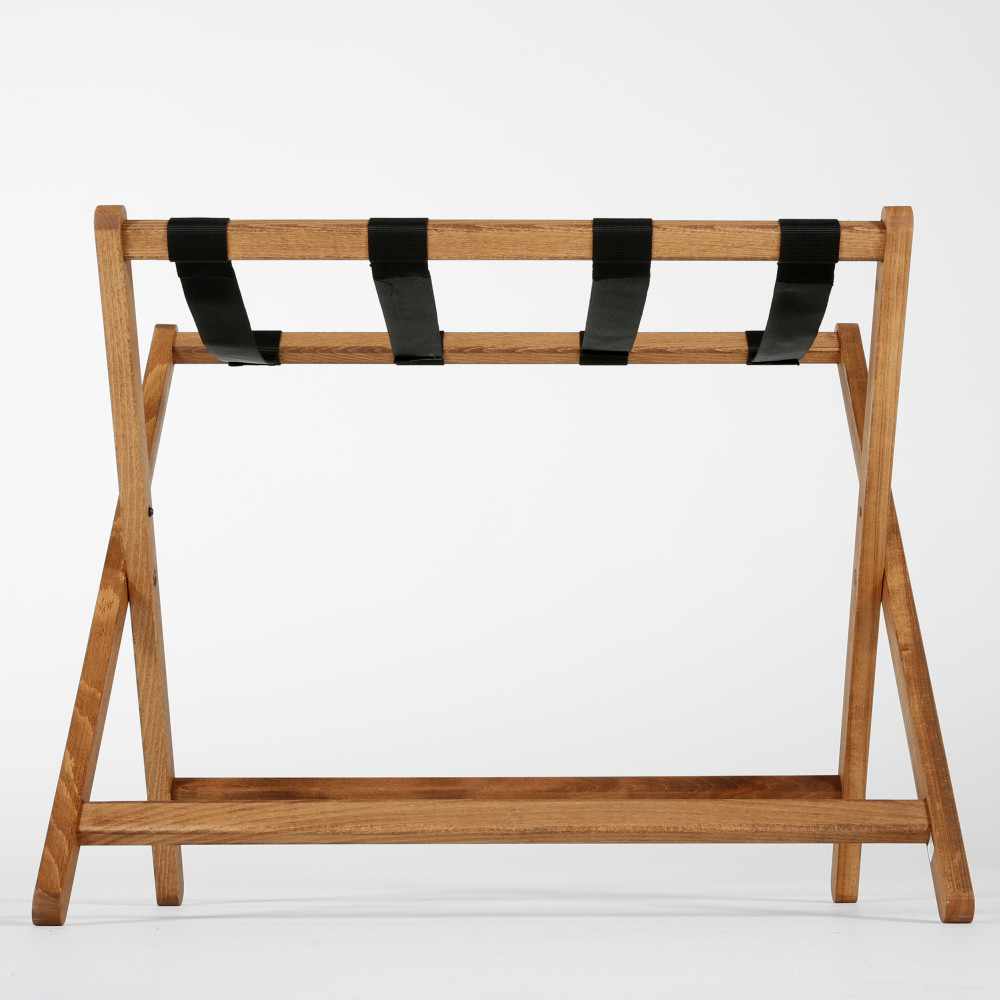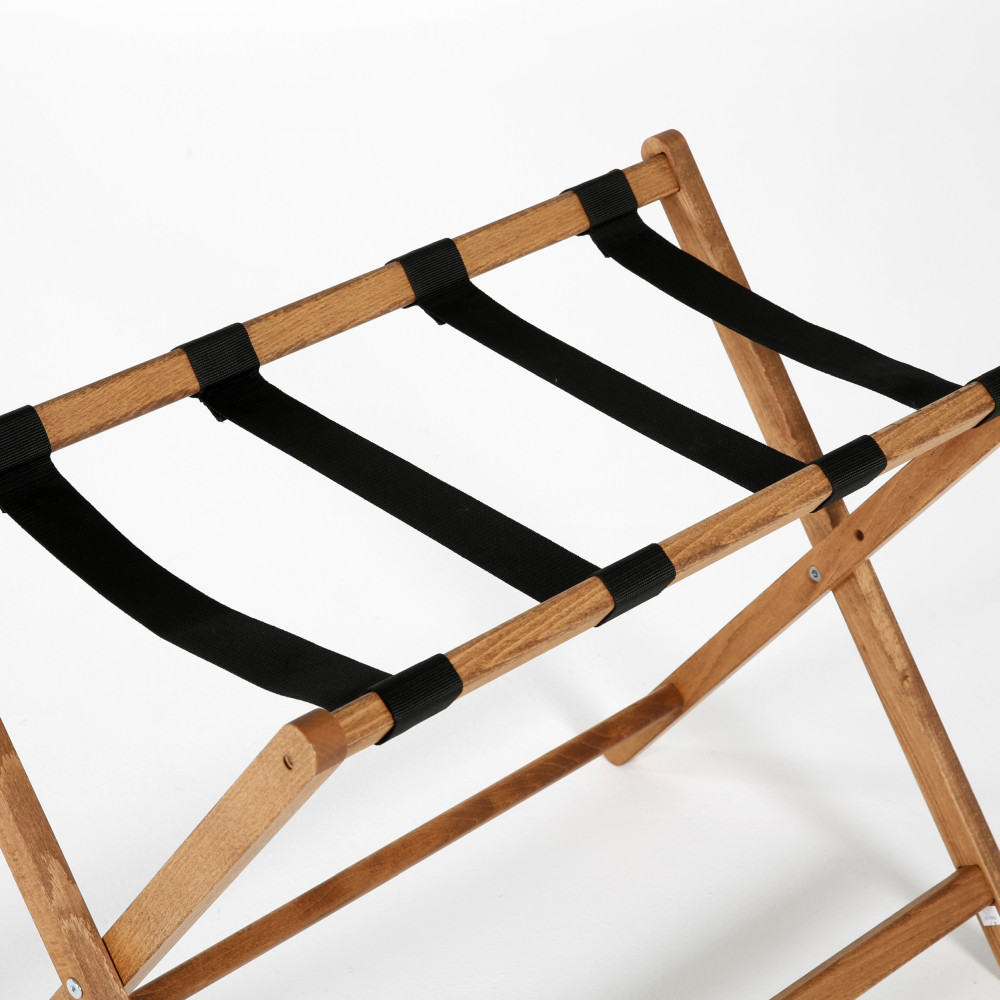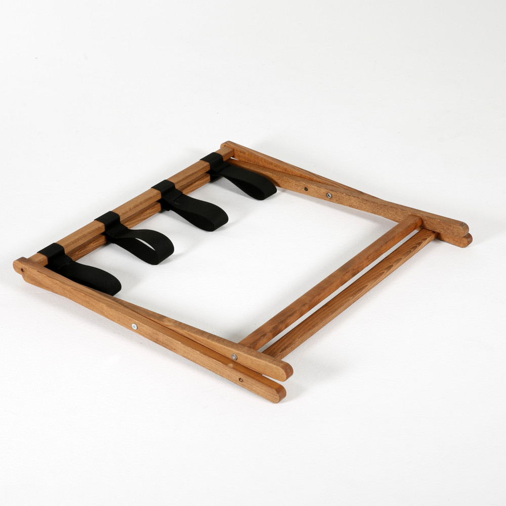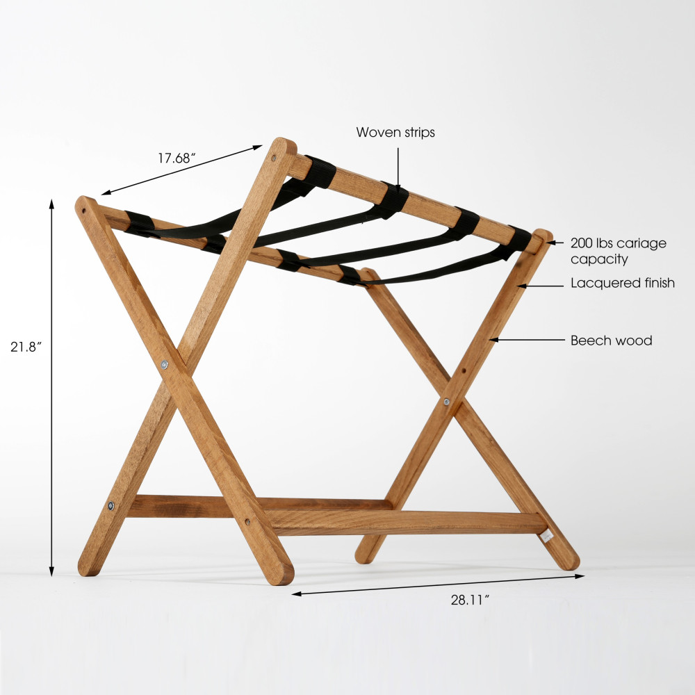 Dark Beech Wood Folding Luggage Rack with Woolen Straps – 18×30 Inch Travel Suitcase Holder