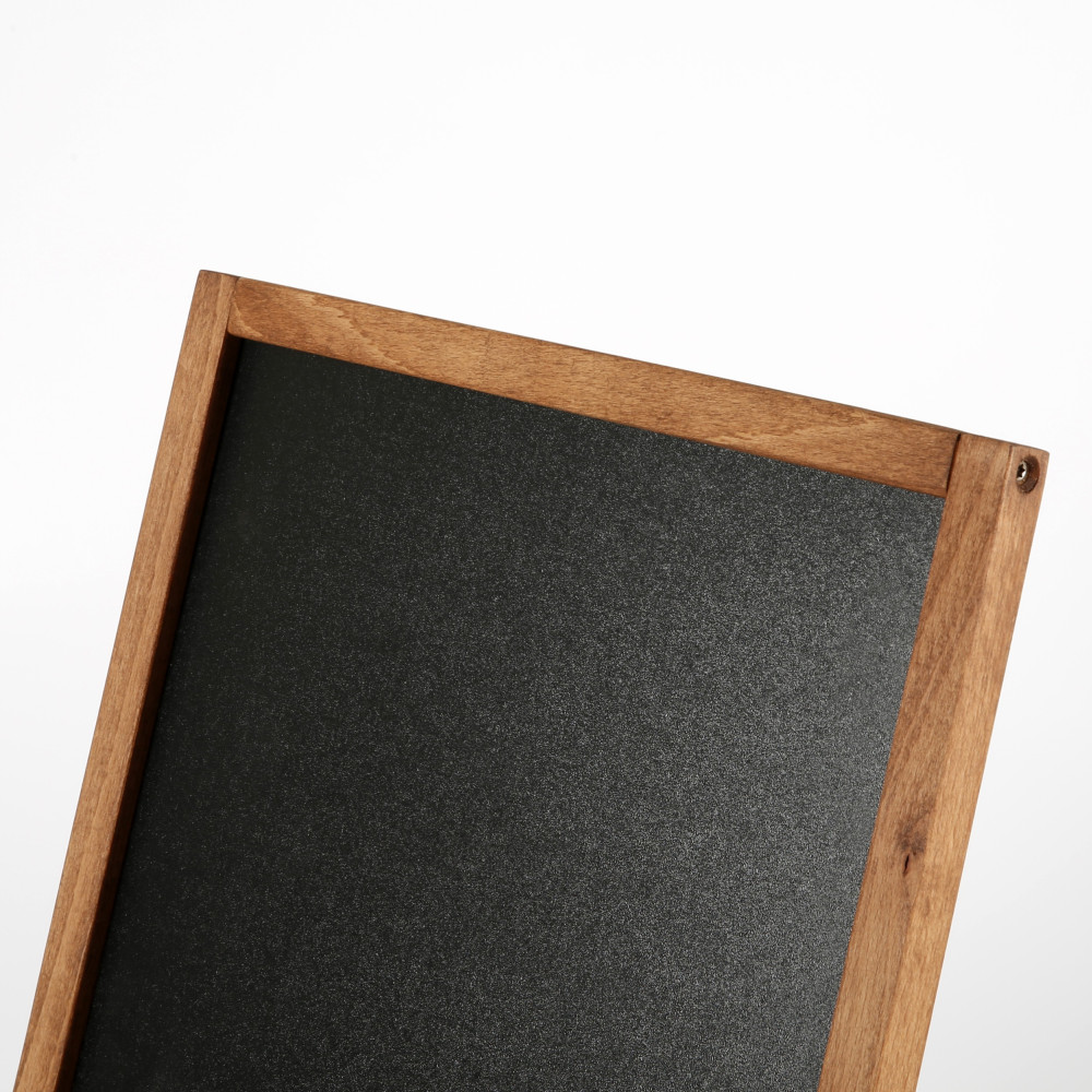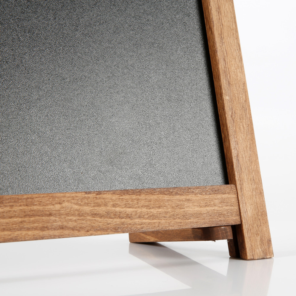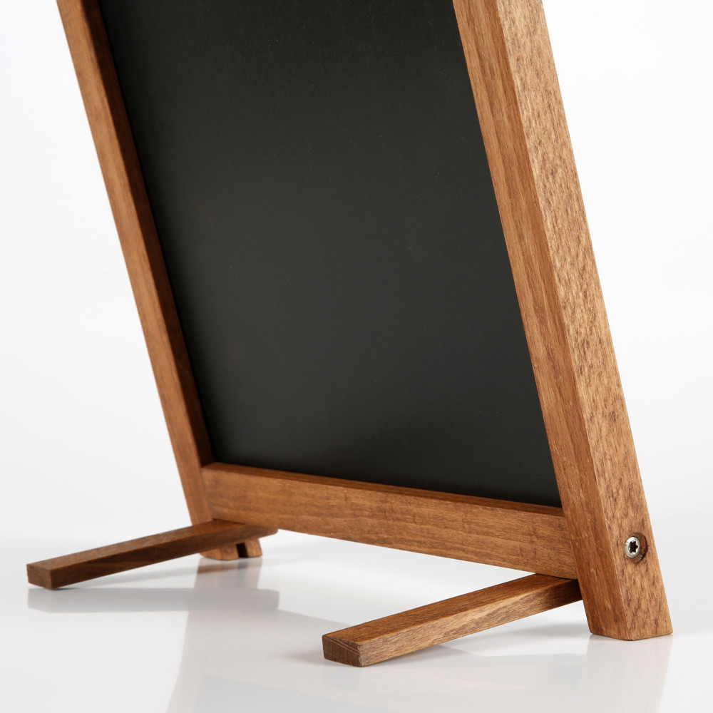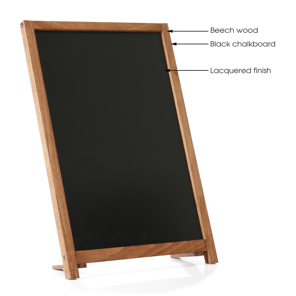 Modern style, made of beech wood. This easel is a light and affordable solution for restaurants, retail stores, and any commercial environment. This item is made of wood. Because of the natural differences in wood, no two items will look the same. Each item is designed from the same type of wood, but each will have its unique appearance and wood-grain.This Easel and Chalkboard is made of the finest materials while providing the highest level of quality. To ensure the sustainability of the quality, It's lacquered finish which is resistant to the spill of food and fizzy drinks.Excellent way to get the attention of your customers, participants or friends or use it as a creative memory list for yourself.