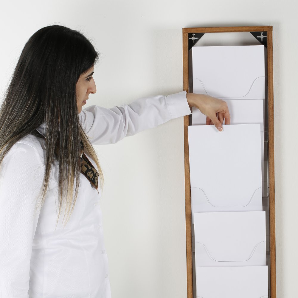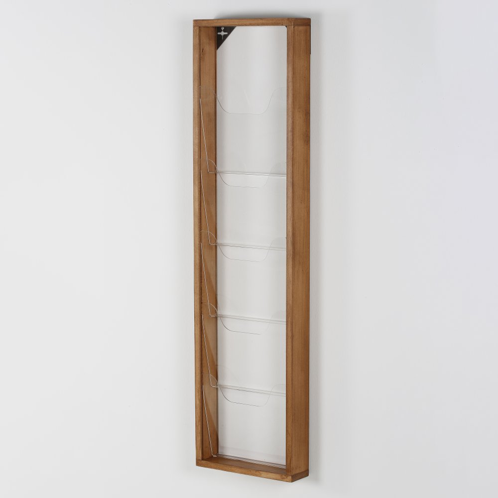 Dark Wood Wall-Mounted Magazine Rack – 5x A4 Slots, 8.5×11 Capacity